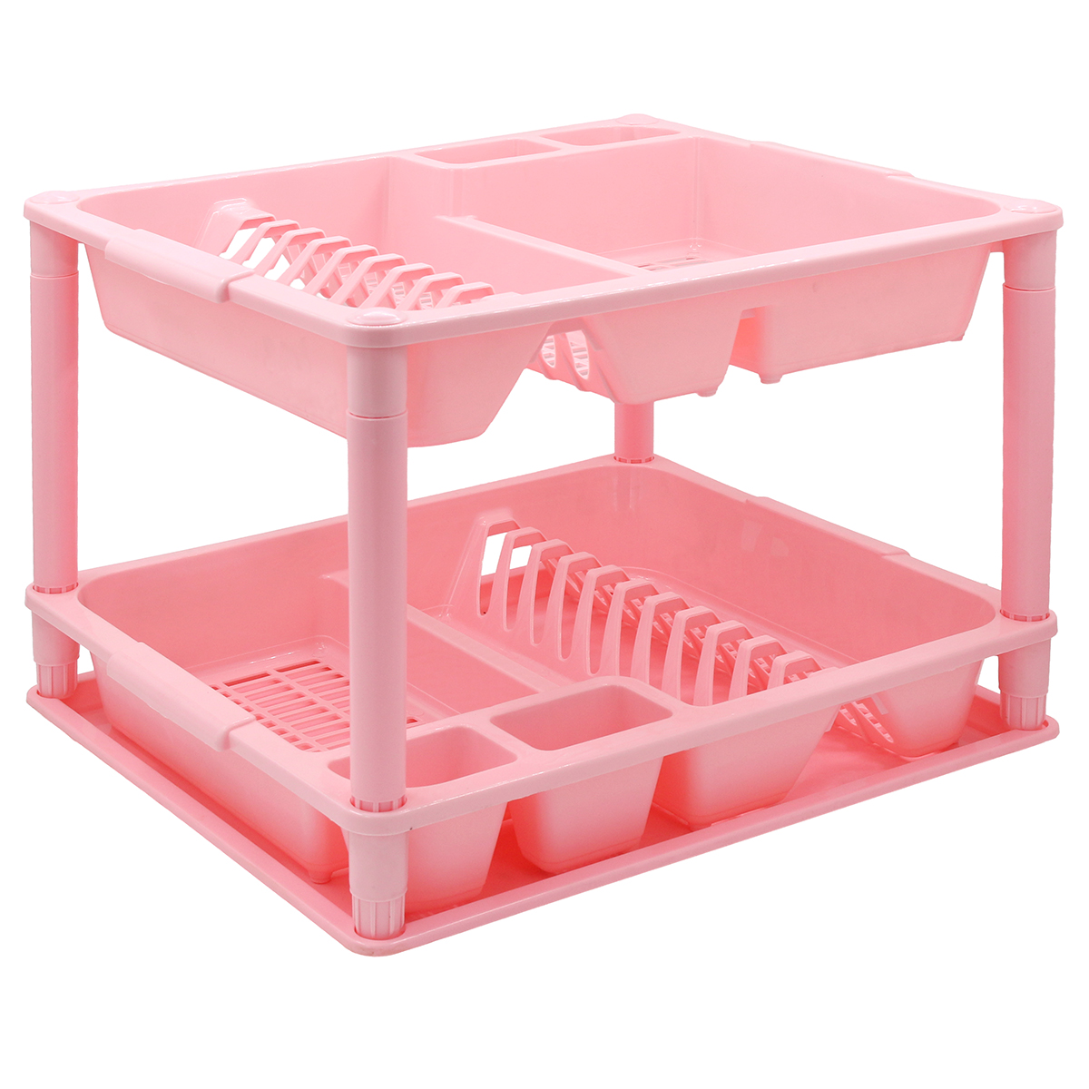 Πιατοθήκη πλαστική διώροφη 45Χ37Χ33 εκ. Ροζ με δίσκο - KESKOR 42670-6