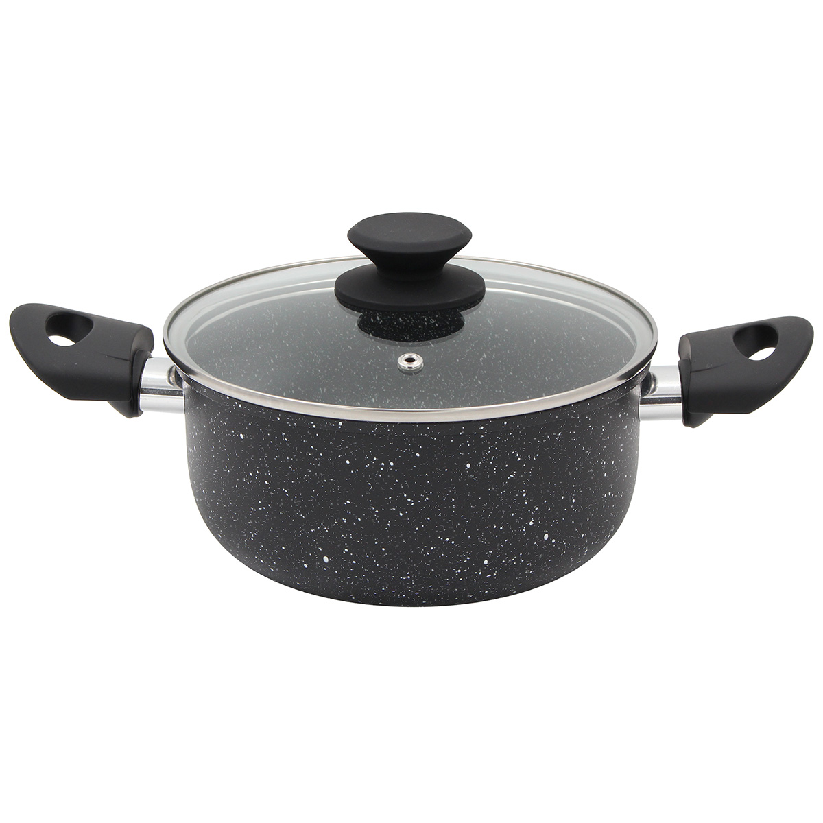 Κατσαρόλα αλουμινίου αντικολλητική με κεραμική επίστρωση πέτρας και πυρίμαχο διάφανο καπάκι Αυτή η κατσαρόλα αλουμινίου με αντικολλητική κεραμική επίστρωση πέτρας προσφέρει υγιεινό μαγείρεμα χωρίς κόλλημα. Διαθέτει ανθεκτικό διάφανο πυρίμαχο καπάκι, ιδανικό για καθημερινή χρήση και εύκολη παρακολούθηση του μαγειρέματος.