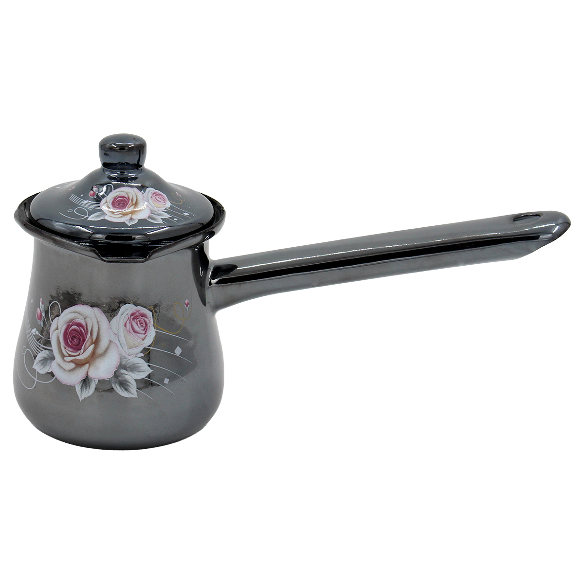 Μπρίκι εμαγιέ Φ8Χ11,5 εκ. με σχέδιο Λουλούδι και καπάκι Αυτό το μπρίκι εμαγιέ με καπάκι, είναι ιδανικό για καθημερινή χρήση και προσθέτει στυλ στον πρωινό σας καφέ.