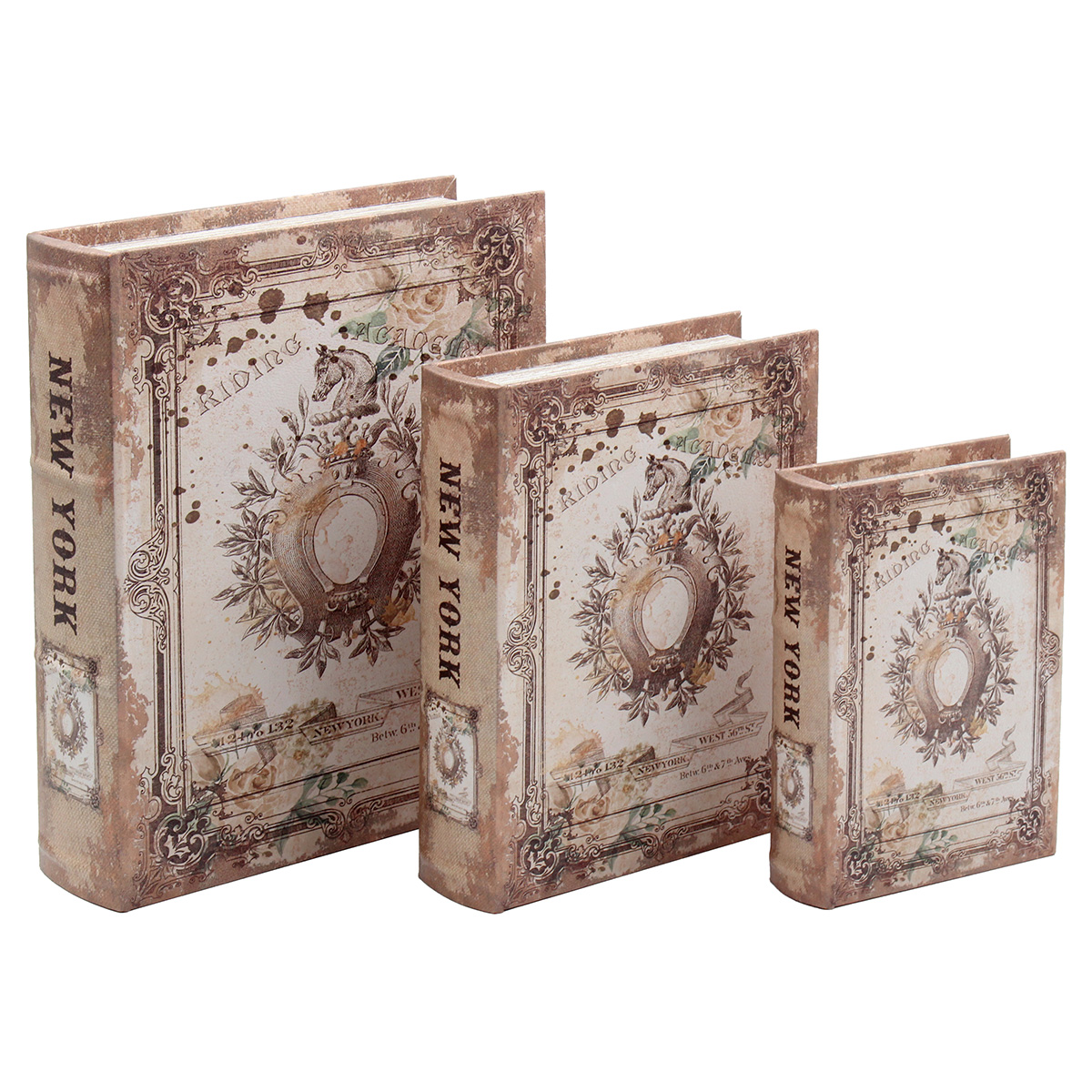 Βιβλία - κουτιά αποθήκευσης διακοσμητικά τεμ. 3 24Χ30Χ7 - 19Χ24Χ5,5 - 13,5Χ19Χ4 εκ. Αυτά τα διακοσμητικά κουτιά αποθήκευσης σε σχήμα βιβλίου (3 τεμάχια: 24Χ30Χ7, 19Χ24Χ5,5 και 13,5Χ19Χ4 εκ.) προσφέρουν πρωτότυπο και κομψό τρόπο οργάνωσης μικροαντικειμένων, προσθέτοντας διακοσμητική πινελιά στον χώρο.