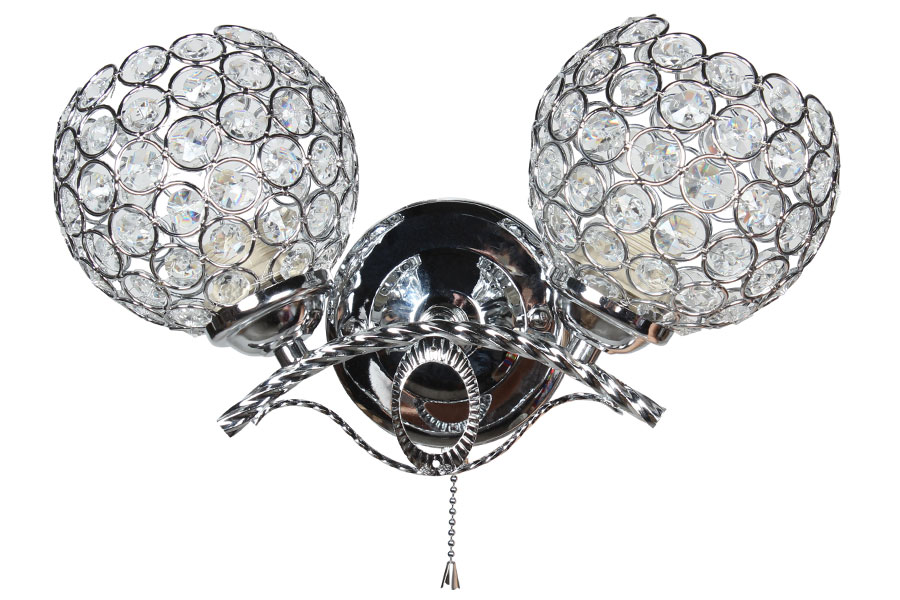 Απλίκα τοίχου μεταλλική 2 Χ Ε27 30Χ13Χ19 εκ. χρώμιο με κρύσταλλα Διαθέτει διακόπτη ON/OFF με αλυσίδα.