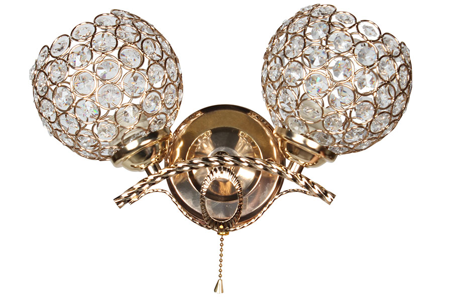 Απλίκα τοίχου μεταλλική 2 Χ Ε27 30Χ13Χ19 εκ. χρυσή με κρύσταλλα Διαθέτει διακόπτη ON/OFF με αλυσίδα.