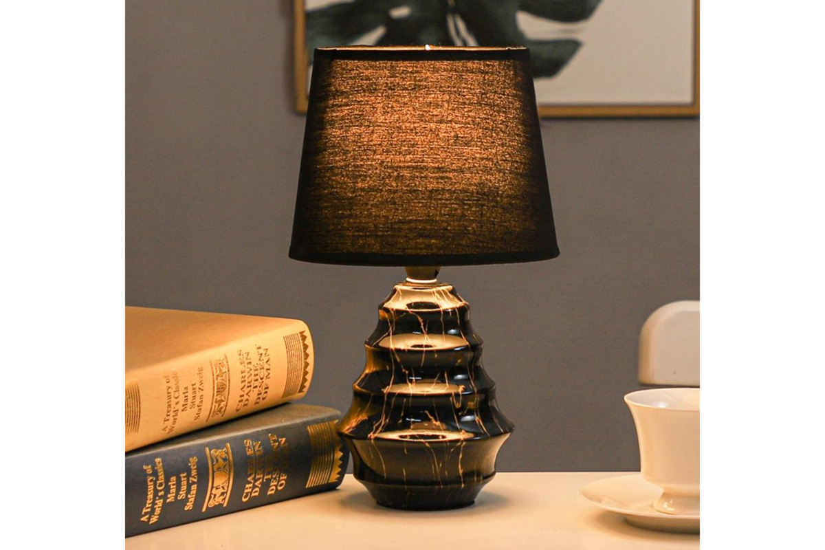 Λάμπα κεραμική Ε27 Φ17,5Χ28 εκ. Μαύρη χρυσή με καπέλο.