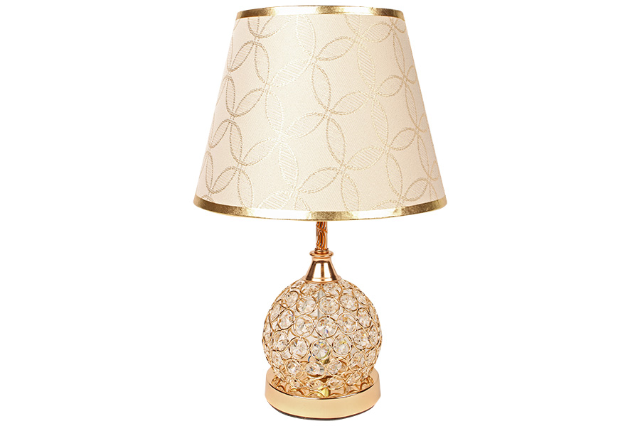 Λάμπα μεταλλική Ε27 Χρυσή με φωτιζόμενη βάση LED, κρύσταλλα και καπέλο - KESKOR 781224