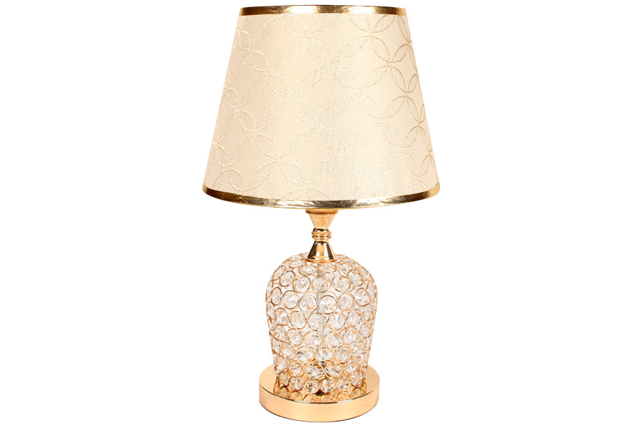 Λάμπα μεταλλική Φ28Χ43 εκ. χρυσή με φωτιζόμενη βάση LED, κρύσταλλα και καπέλο - KESKOR 781209