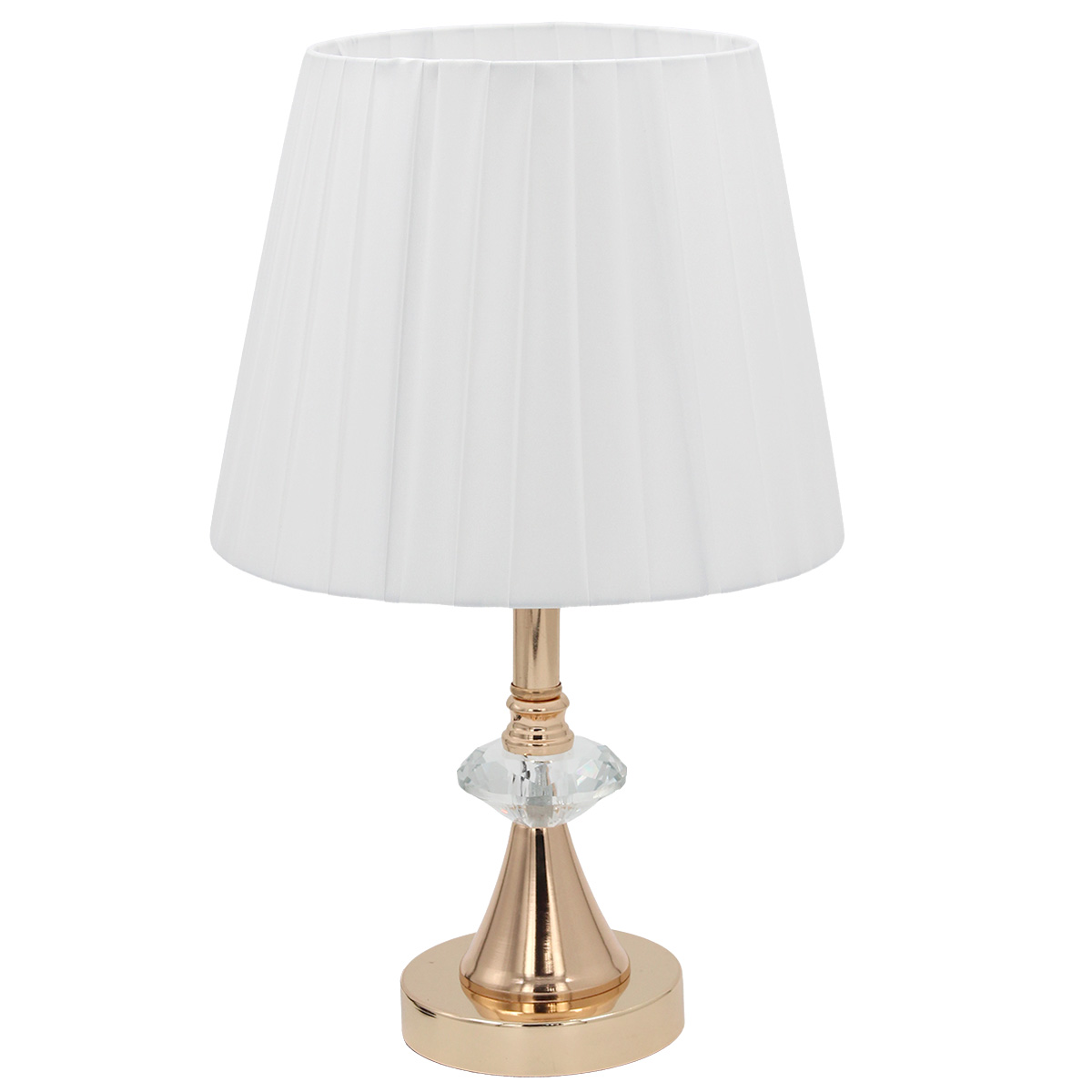 Πορτατίφ - Λάμπα μεταλλική Ε27 Φ21,5Χ34 εκ. Χρυσή με κρύσταλλο και Λευκό καπέλο - KESKOR 69297