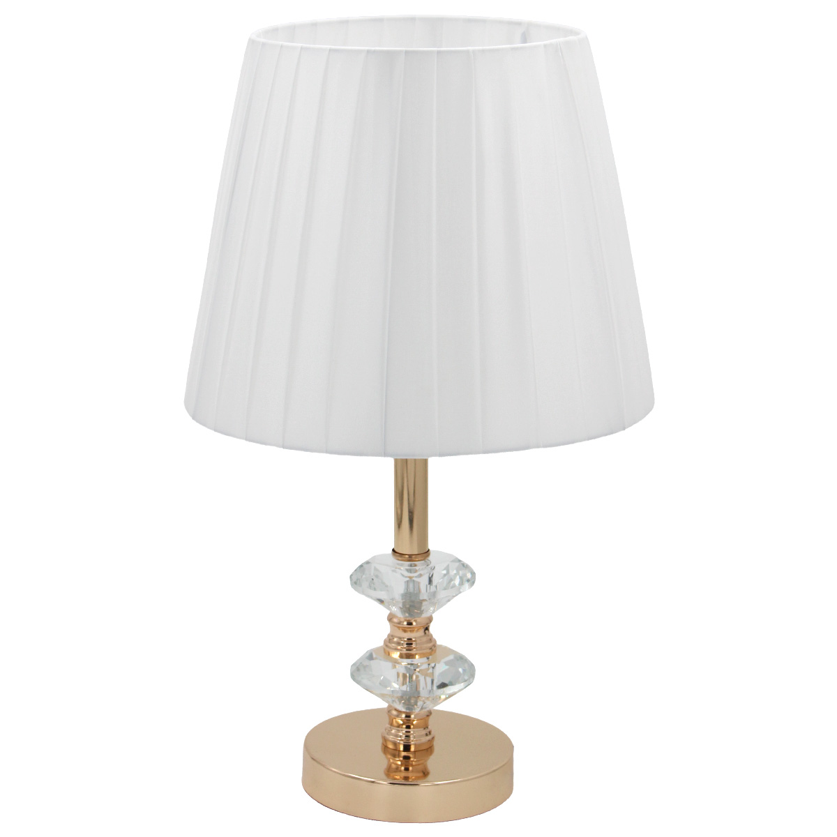 Πορτατίφ - Λάμπα μεταλλική Ε27 Φ21,5Χ35 εκ. Χρυσή με κρύσταλλα και Λευκό καπέλο - KESKOR 69295
