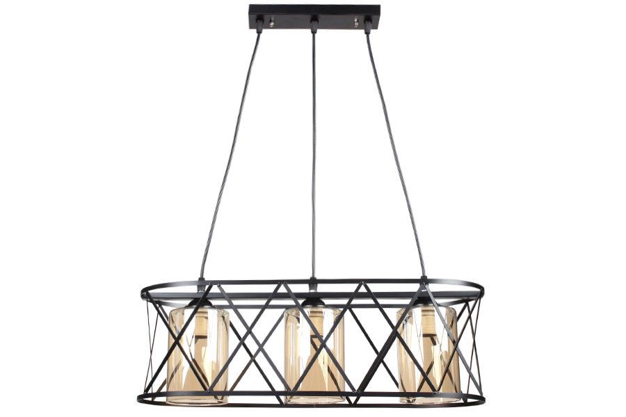 Φωτιστικό κρεμαστό 3 Χ Ε27 53Χ22Χ18 εκ. μαύρο με μελί γυαλιά
