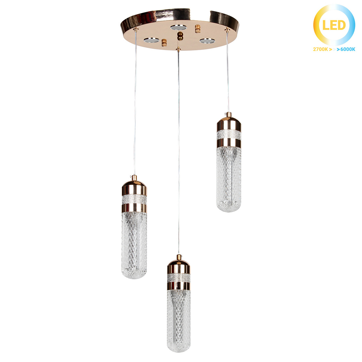 Φωτιστικό κρεμαστό μεταλλικό άνισο LED 24W Φ28 εκ. χρυσό με ακρυλικά - KESKOR 553007