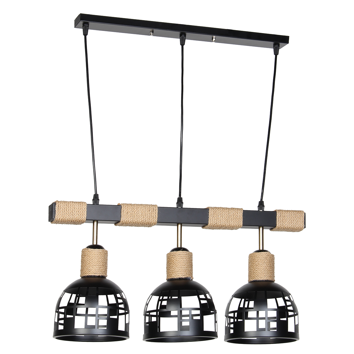 Φωτιστικό μεταλλικό κρεμαστό ράγα 3 Χ Ε27 58Χ16Χ28 εκ. Μαύρο με σχοινί - KESKOR 526828