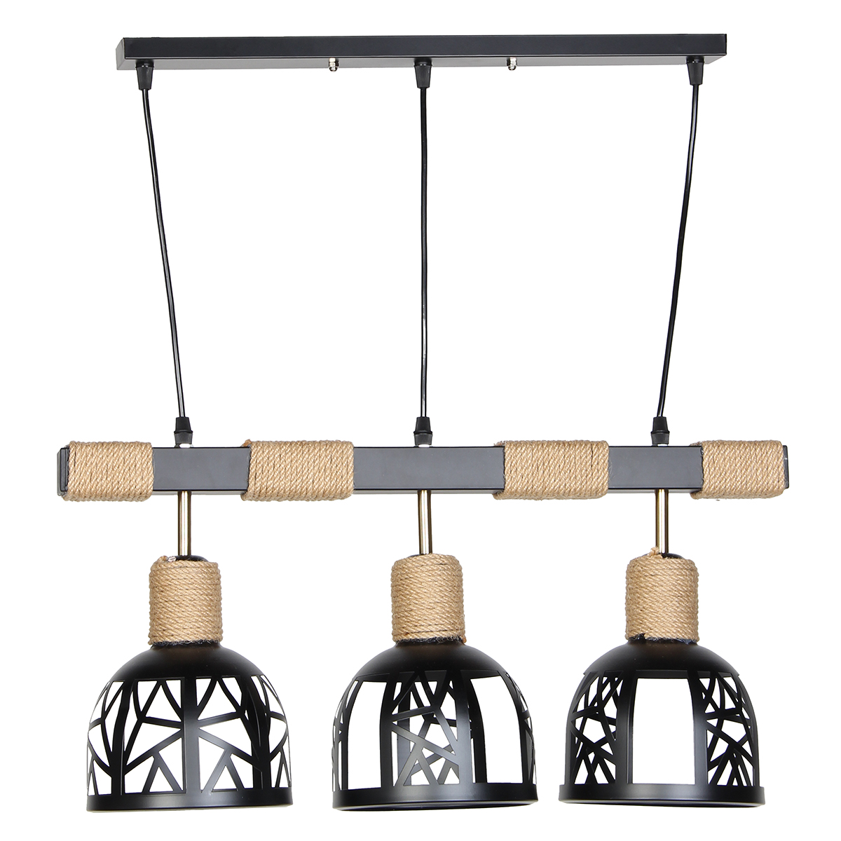 Φωτιστικό μεταλλικό κρεμαστό ράγα 3 Χ Ε27 59Χ16Χ27 εκ. Μαύρο με σχοινί - KESKOR 526826