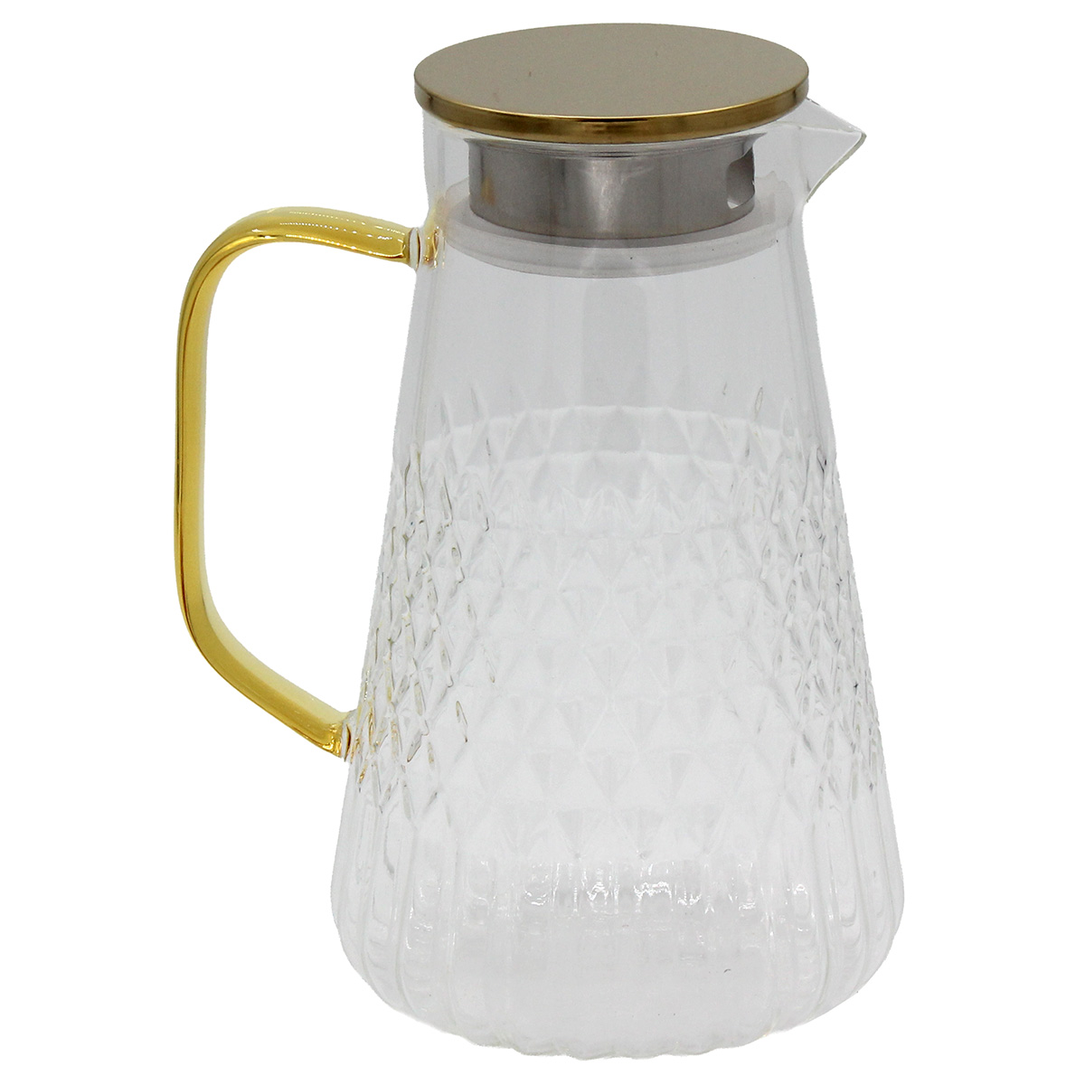 Κανάτα γυάλινη 1500 ml 16Χ12,5Χ21,5 εκ. Διάφανη με ΙΝΟΧ Χρυσό καπάκι