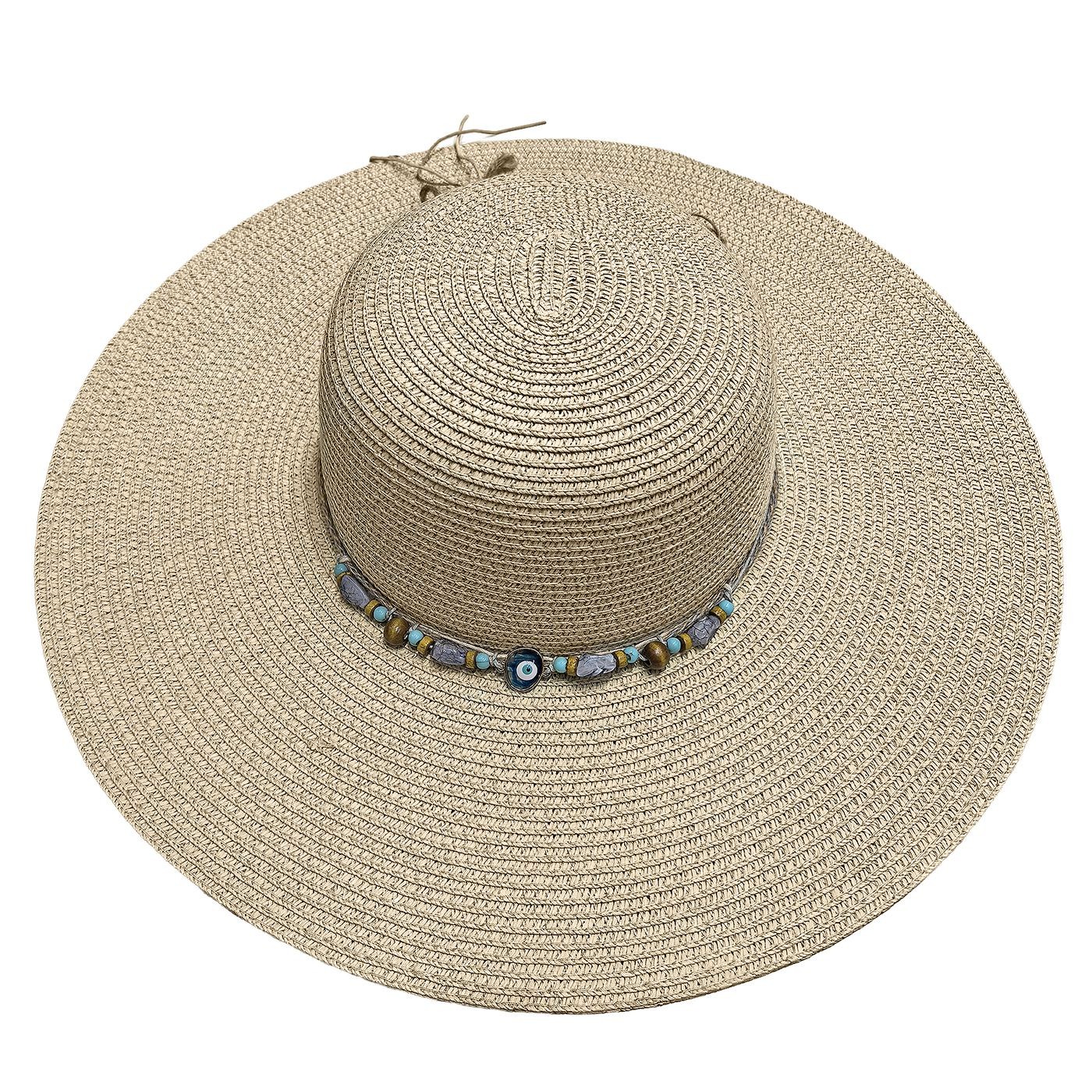 Καπέλο Ψαθόχαρτο Πετράδια Ματάκι Μπεζ ø42cm SummerTiempo 623350