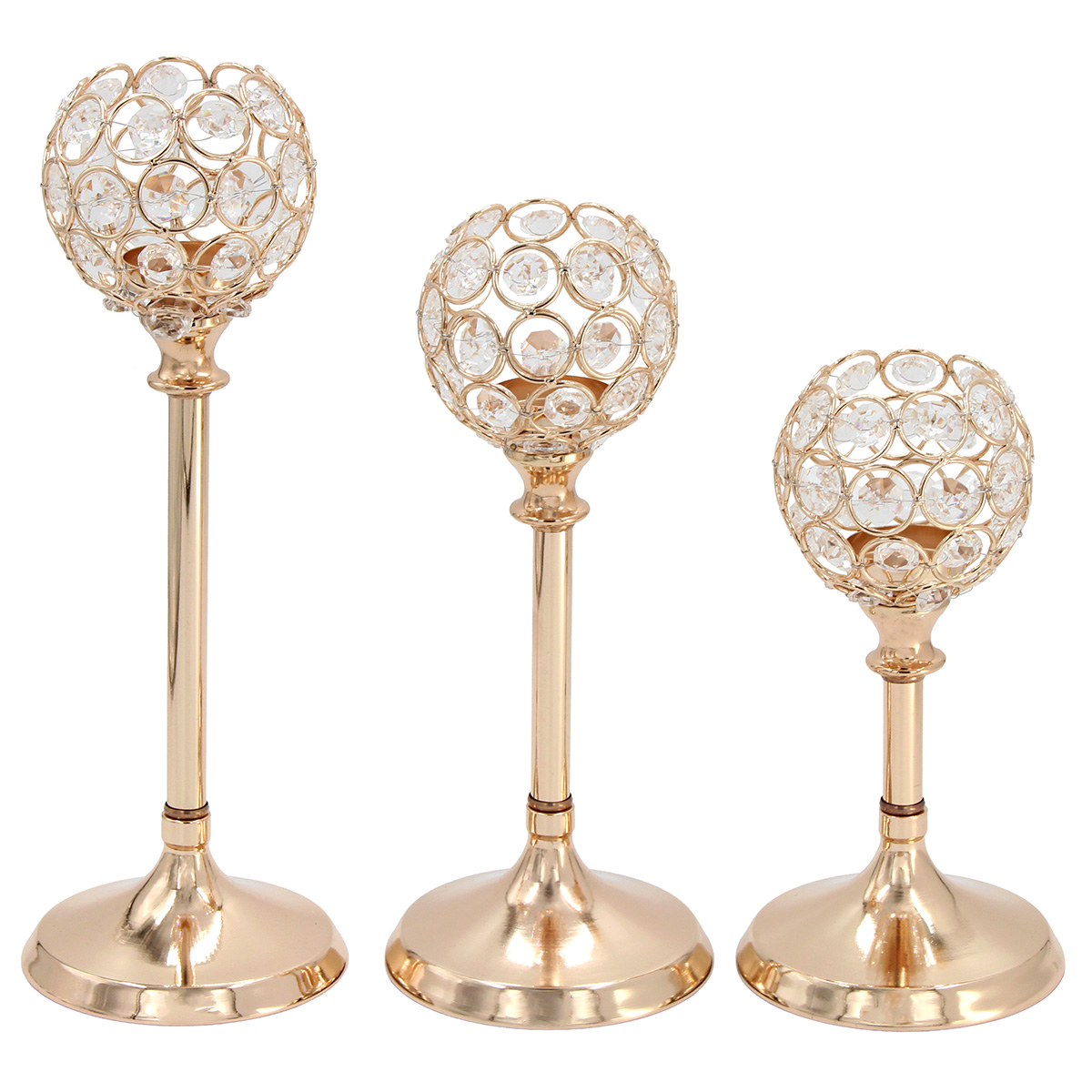 Κηροπήγια τεμ. 3 μεταλλικά Φ11Χ30 εκ. - Φ11Χ26 εκ. - Φ11Χ21 εκ. Χρυσά με κρύσταλλα - KESKOR 52002
