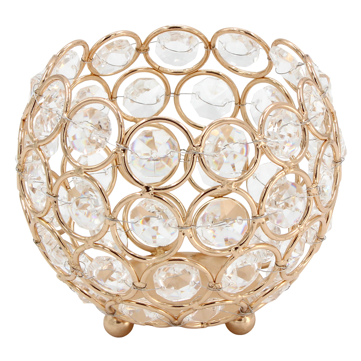 Κηροπήγιο - Διακοσμητικό μεταλλικό Φ10Χ8 εκ. Χρυσό με κρύσταλλα