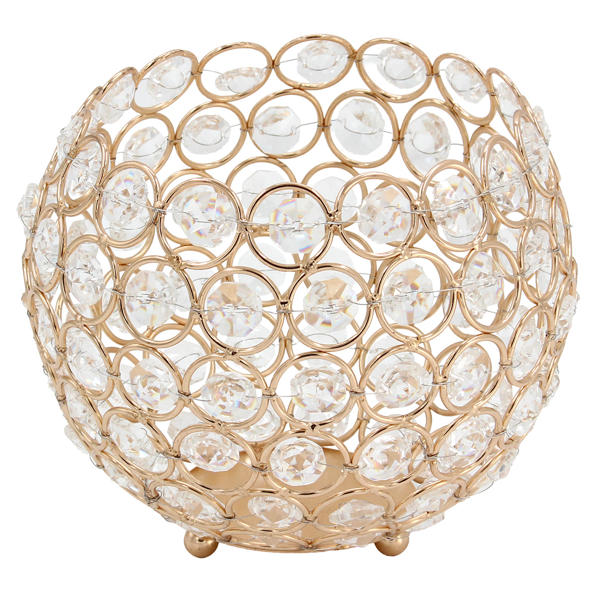Κηροπήγιο - Διακοσμητικό μεταλλικό Φ15Χ13 εκ. Χρυσό με κρύσταλλα