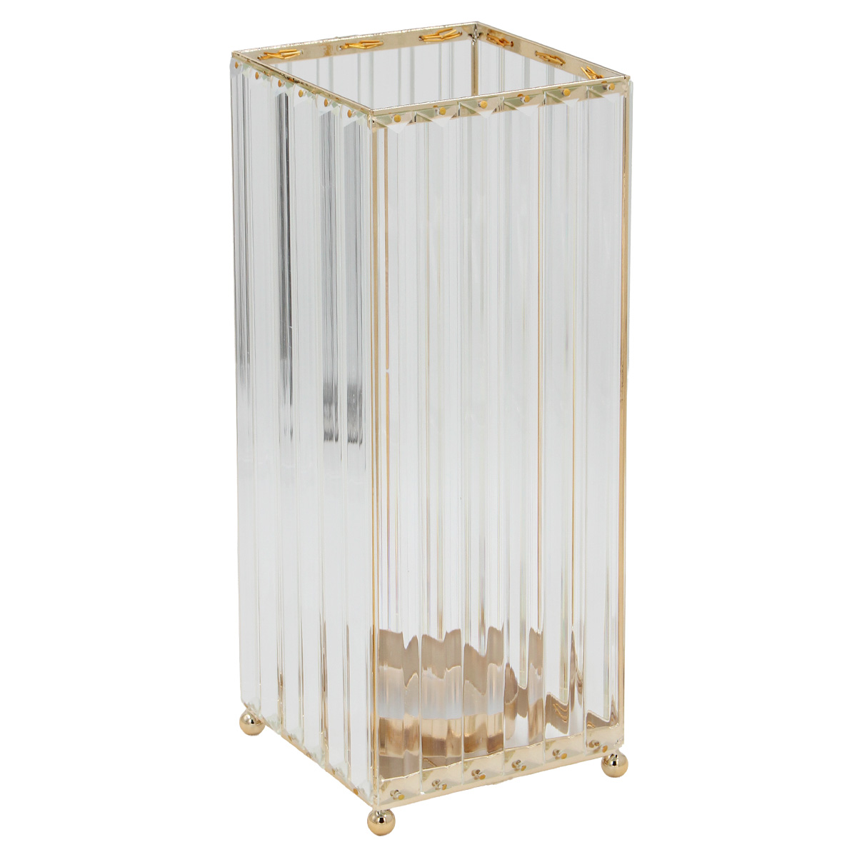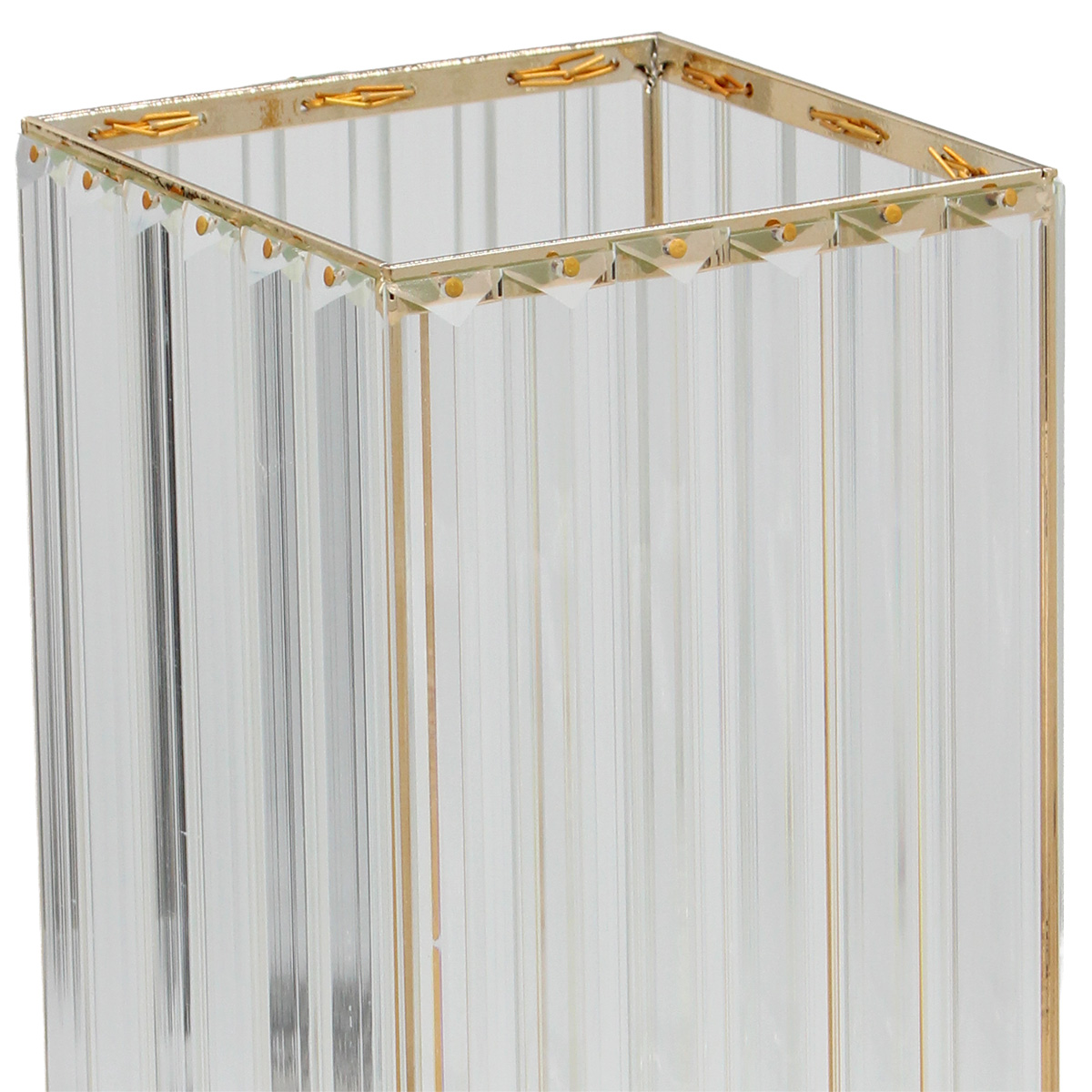 Κηροπήγιο μεταλλικό 13Χ13Χ31,5 εκ. Χρυσό με γυάλινα διακοσμητικά