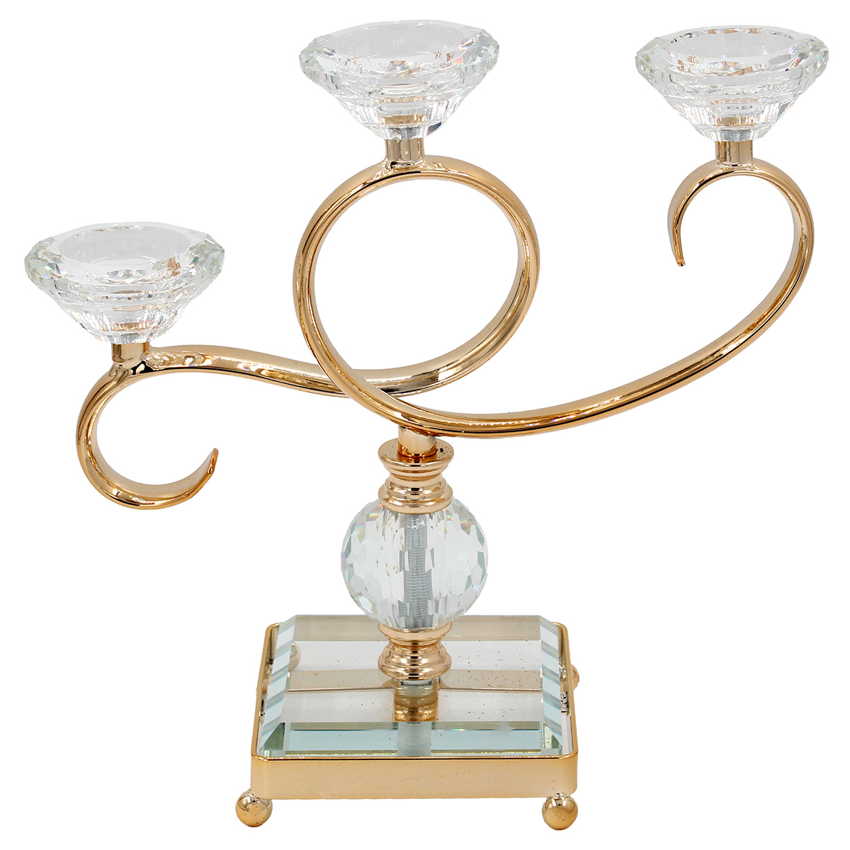 Αυτό το τρίθεσο χρυσό μεταλλικό κηροπήγιο με κρύσταλλα προσδίδει λαμπερή αισθητική. Ιδανικό για επίσημη διακόσμηση.