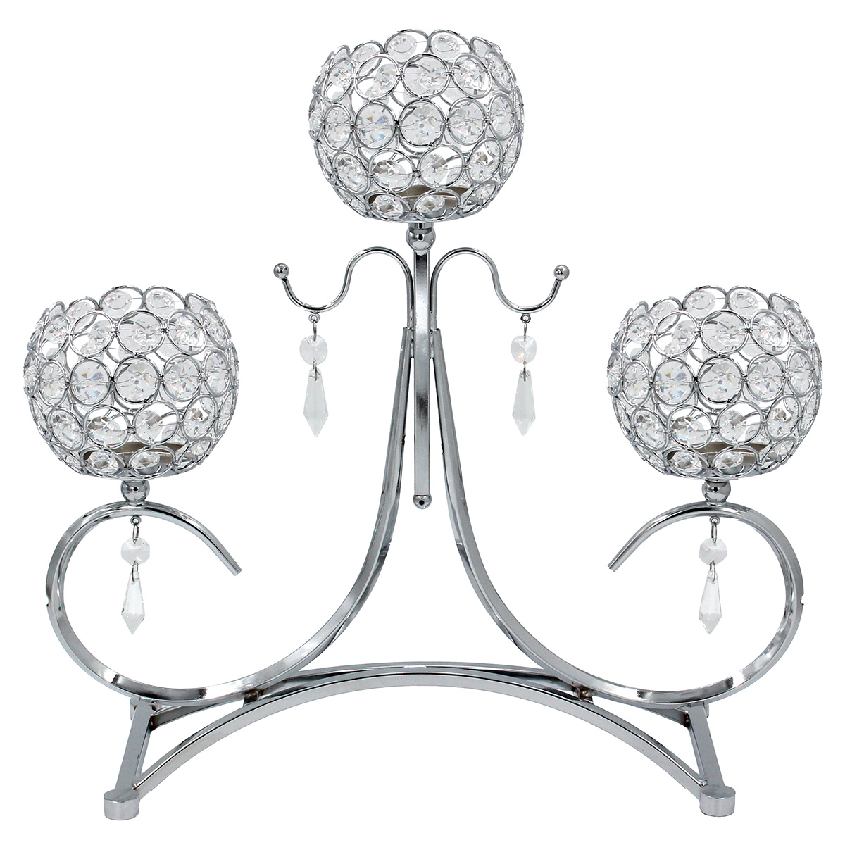 Κηροπήγιο μεταλλικό 3 θέσεις 39Χ13Χ38 εκ. Ασημί με κρύσταλλα