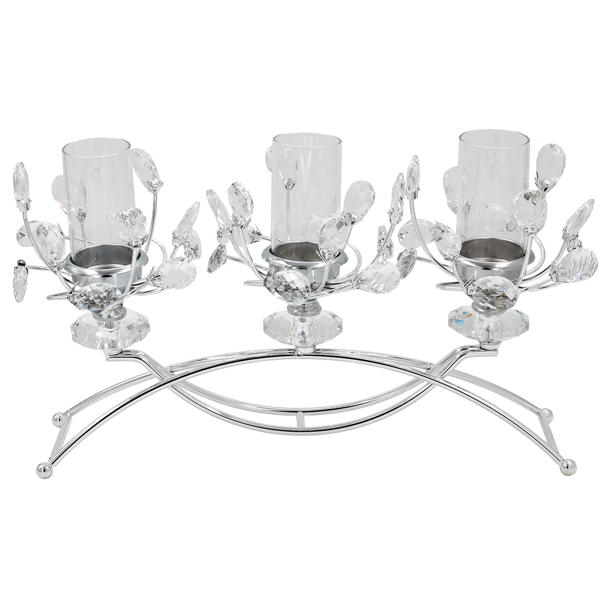 Αυτό το μεταλλικό κηροπήγιο 3 θέσεων σε ασημί απόχρωση με κρύσταλλα και γυαλιά προσφέρει εντυπωσιακό φωτισμό και πολυτελή εμφάνιση. Είναι ιδανικό για τραπέζια, κονσόλες ή εκδηλώσεις που απαιτούν κομψή διακόσμηση.
