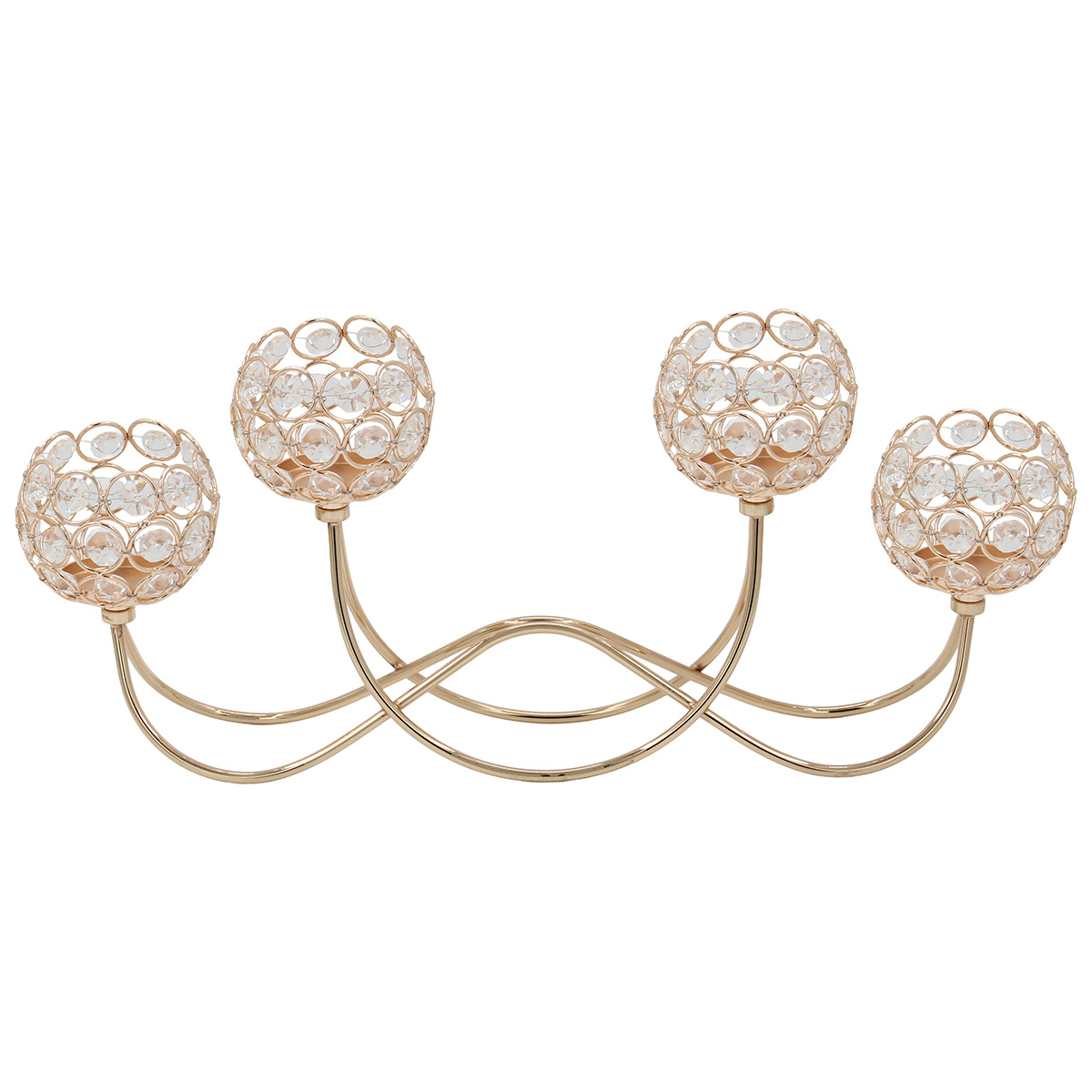 Αυτό το μεταλλικό κηροπήγιο 4 θέσεων αποτελεί κομψή λύση για μικρότερες επιφάνειες με υψηλή αισθητική. Ο χρυσός σκελετός και τα κρύσταλλα προσδίδουν λάμψη και αναδεικνύουν τον χώρο.