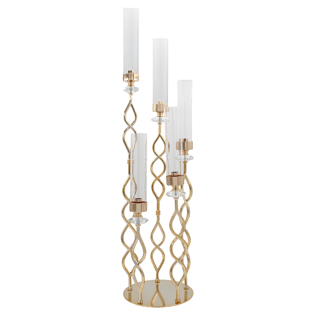 Κηροπήγιο μεταλλικό 5 θέσεις Φ22Χ98 εκ. Χρυσό με κρύσταλλα και ακρυλικά