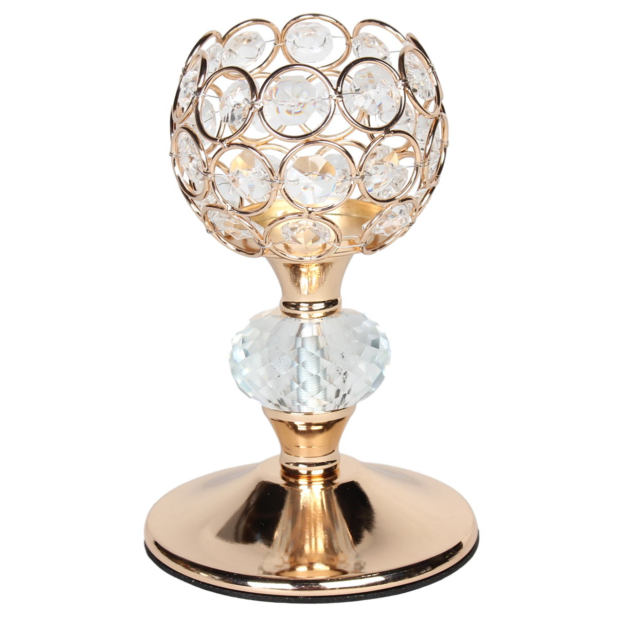 Κηροπήγιο μεταλλικό Φ10,5Χ16 εκ. χρυσό με κρύσταλλα