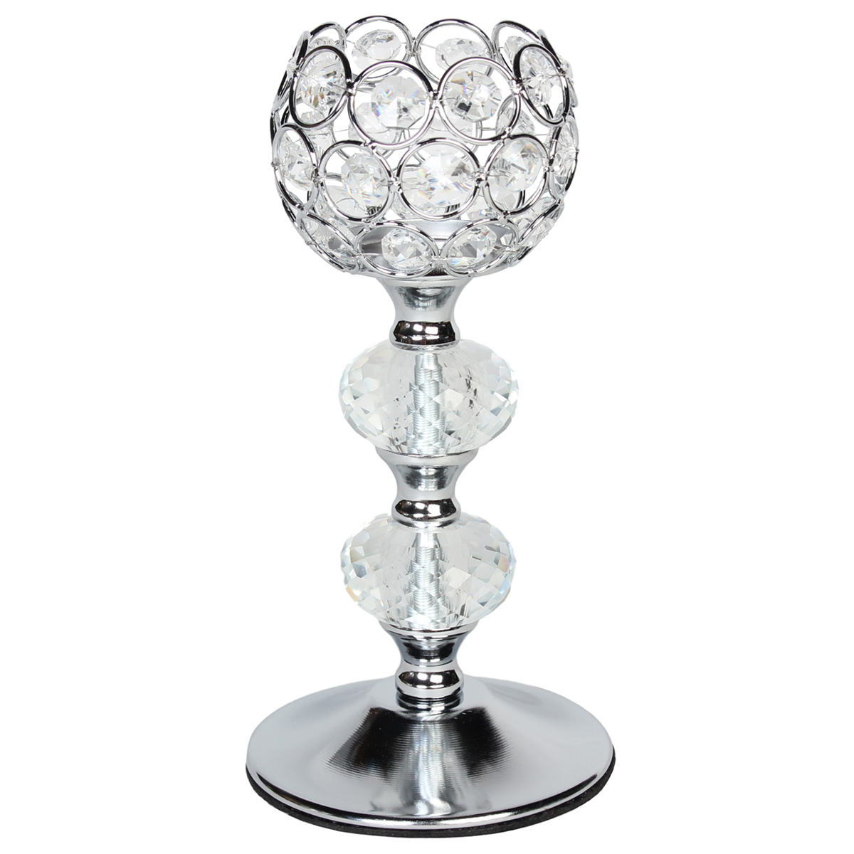 Κηροπήγιο μεταλλικό Φ10,5Χ21 εκ. ασημί με κρύσταλλα