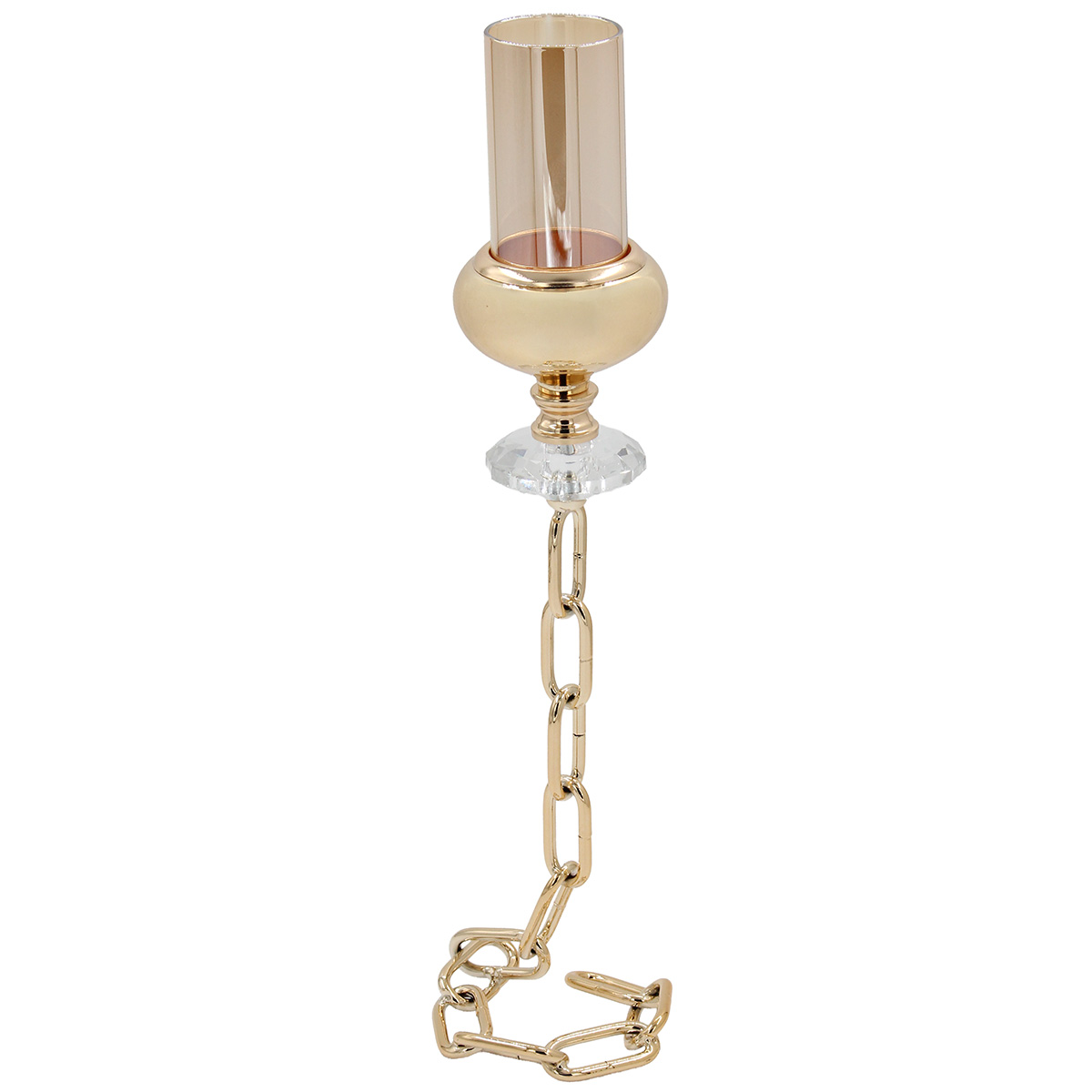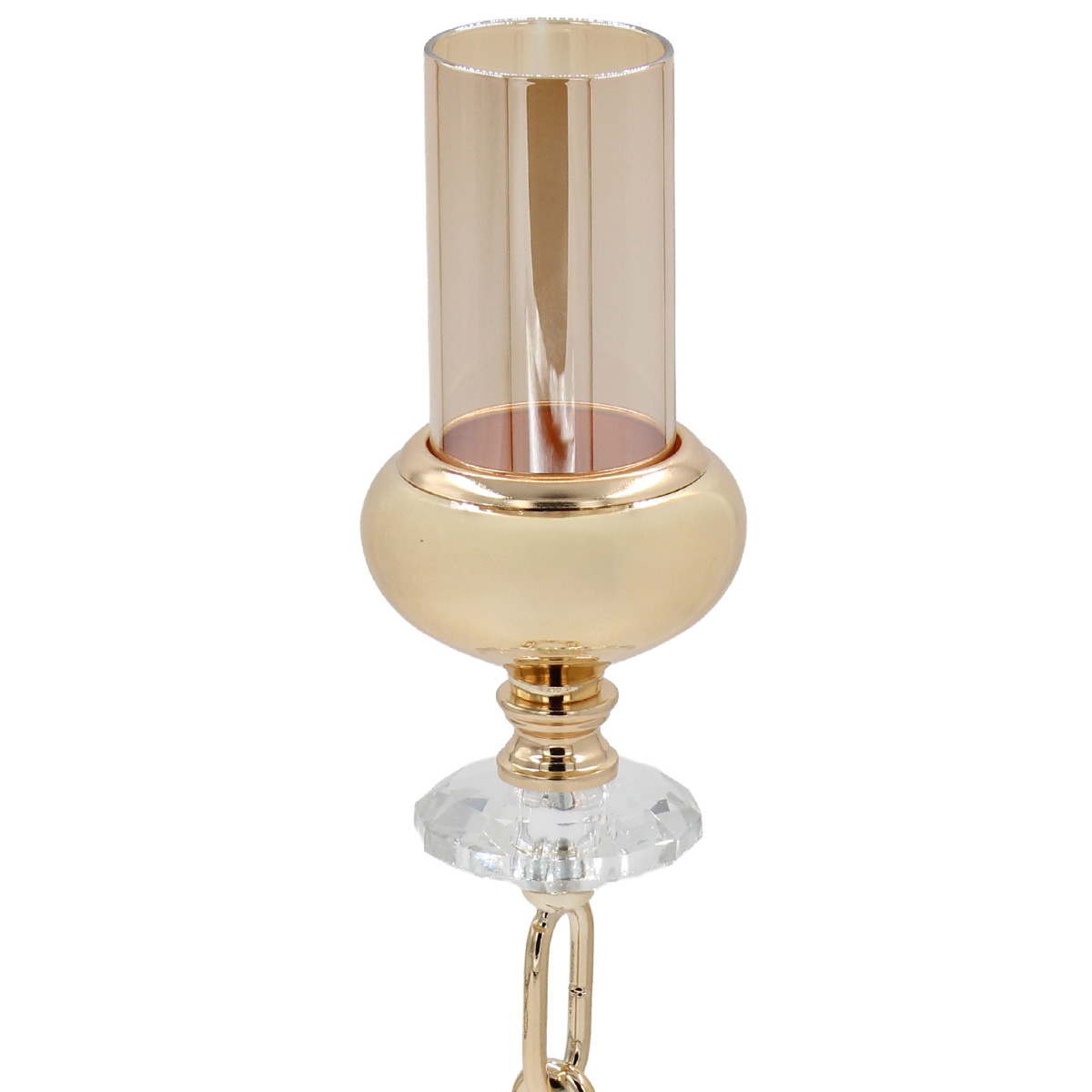 Κηροπήγιο μεταλλικό Φ10Χ40 εκ. Χρυσό με γυαλί και κρύσταλλο