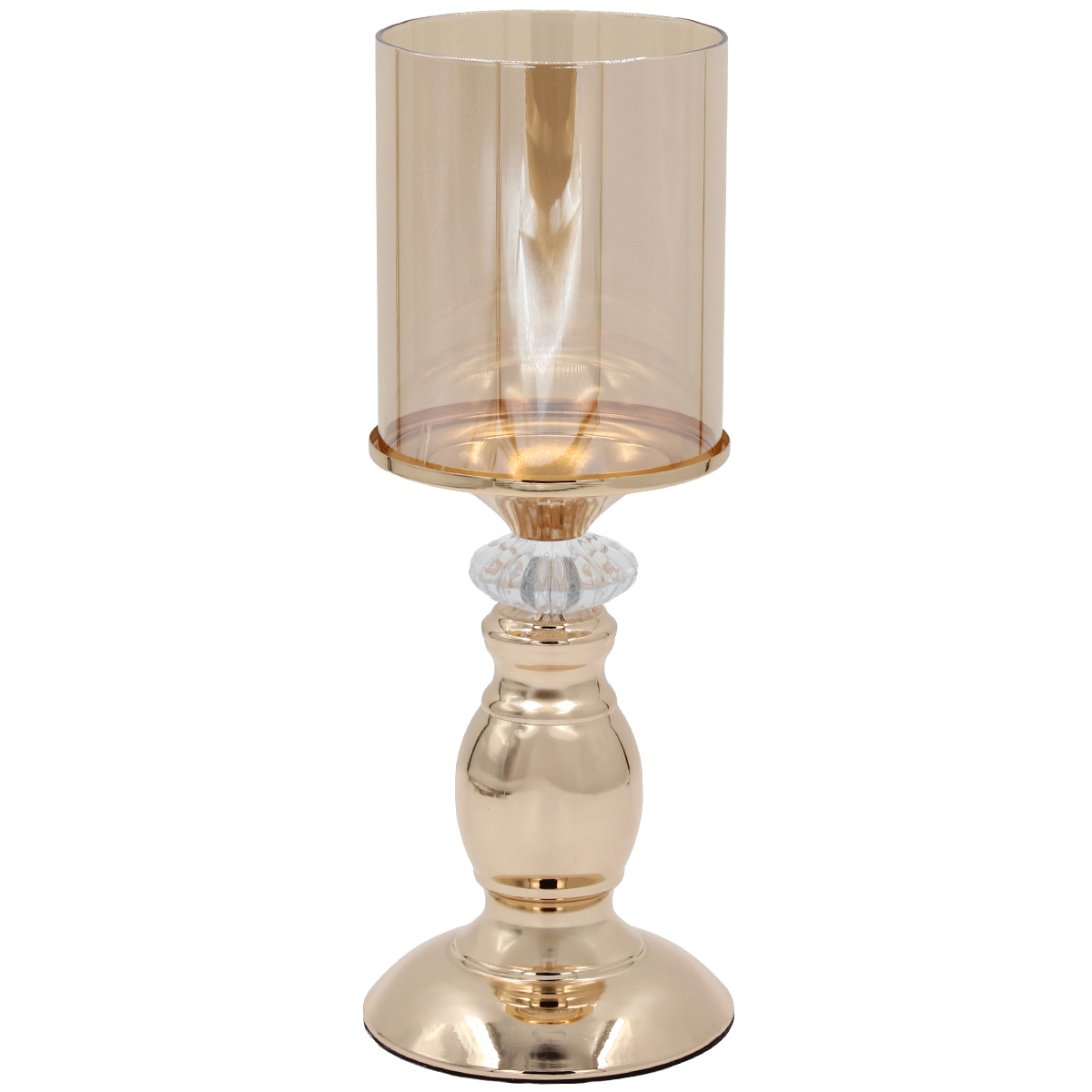 Κηροπήγιο μεταλλικό Φ11Χ29 εκ. Χρυσό με μελί γυαλί