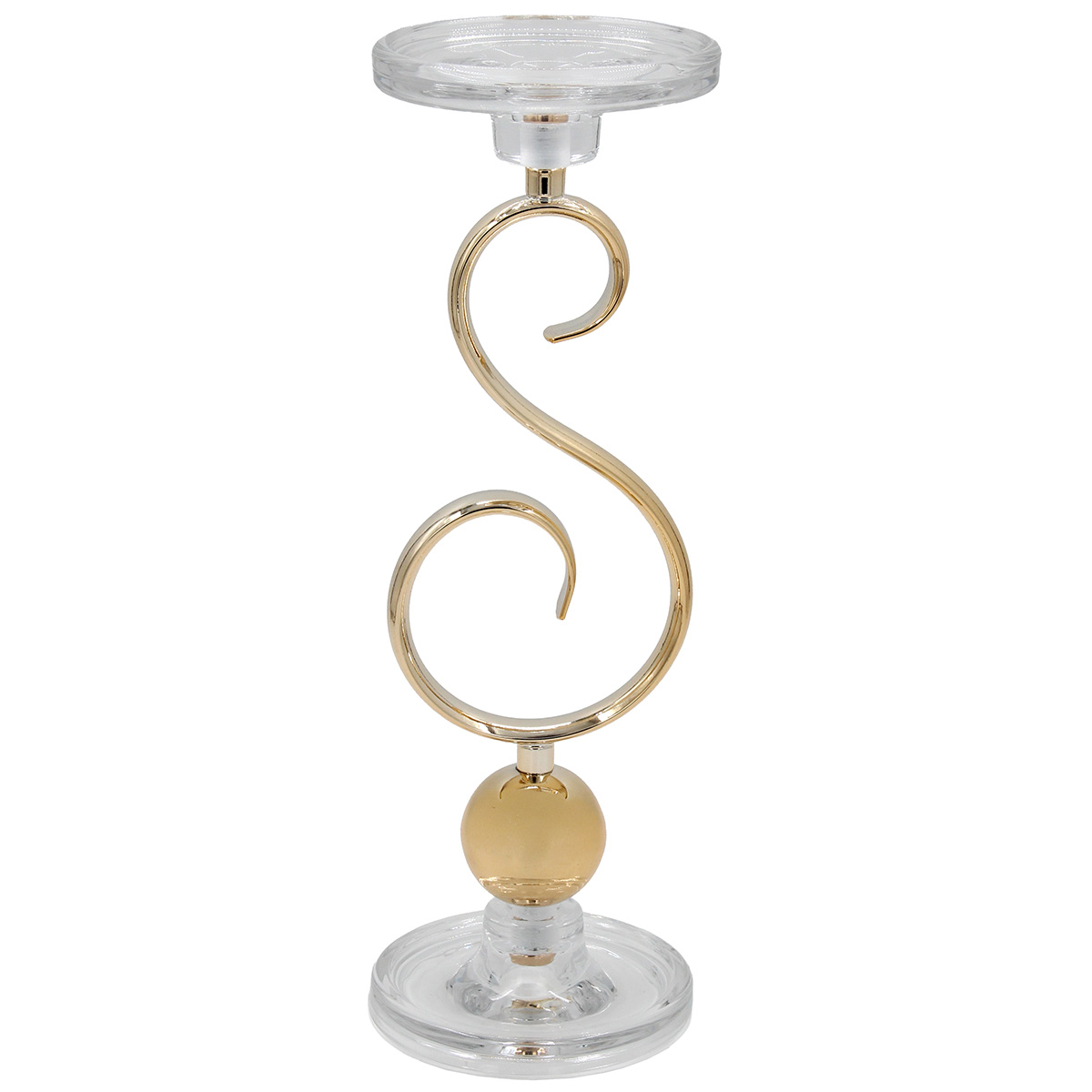 Κηροπήγιο μεταλλικό Φ11Χ34 εκ. Χρυσό με γυαλί