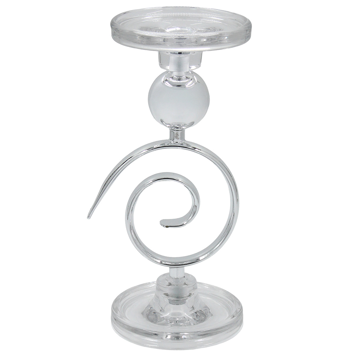Κηροπήγιο μεταλλικό Φ12Χ26 εκ. Ασημί με γυαλί