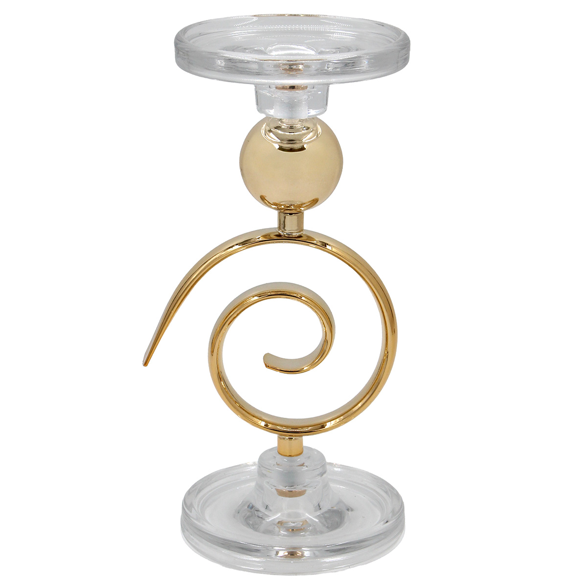 Κηροπήγιο μεταλλικό Φ12Χ26 εκ. Χρυσό με γυαλί