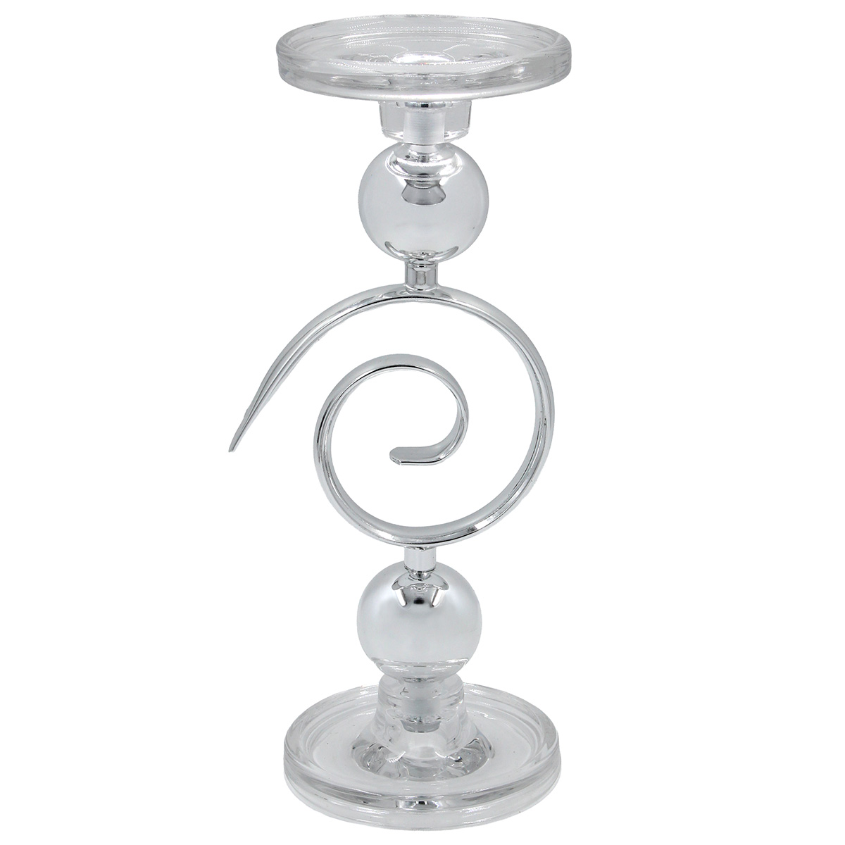 Κηροπήγιο μεταλλικό Φ12Χ30 εκ. Ασημί με γυαλί - KESKOR 43180