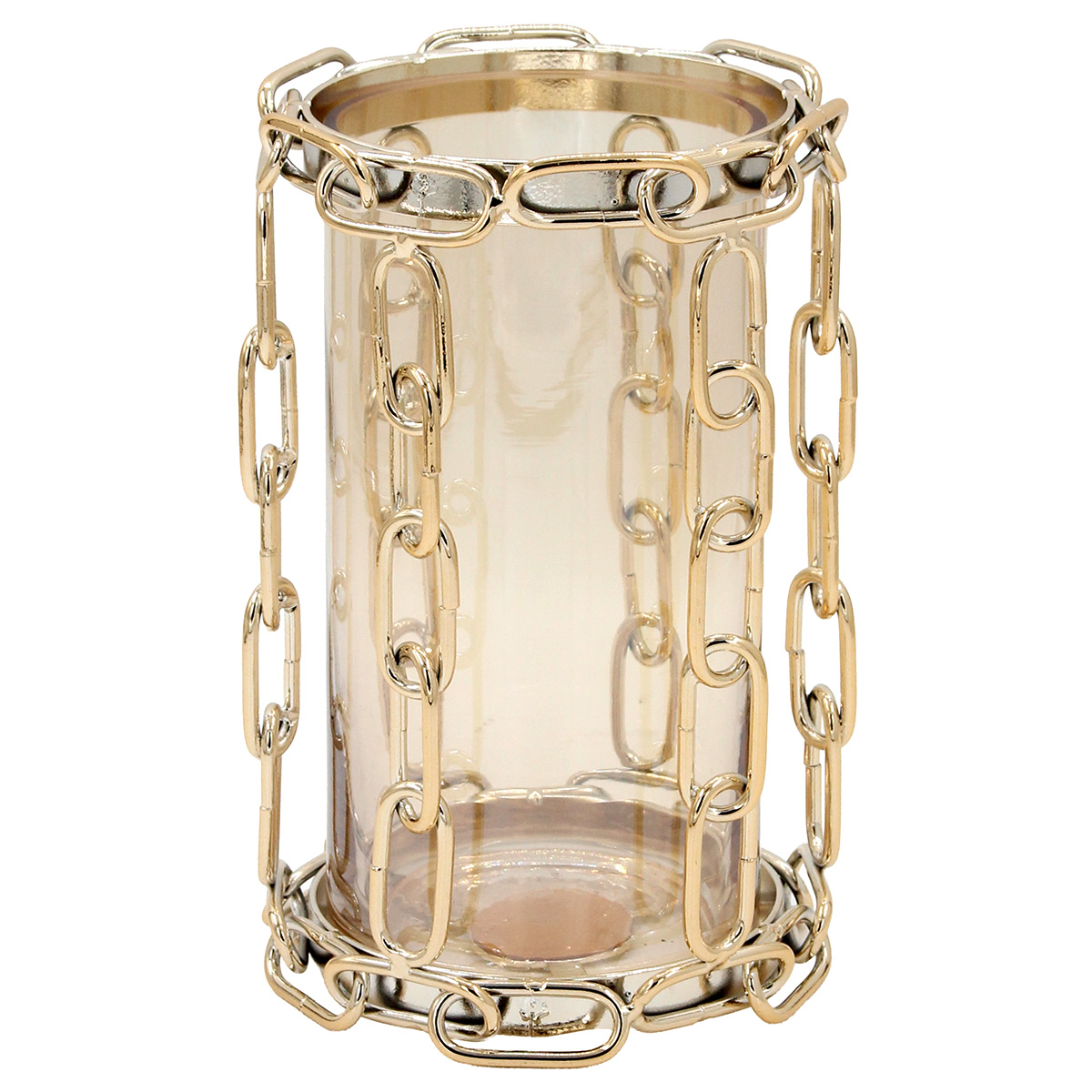Κηροπήγιο μεταλλικό Φ13Χ21 εκ. Χρυσό με μελί γυαλί