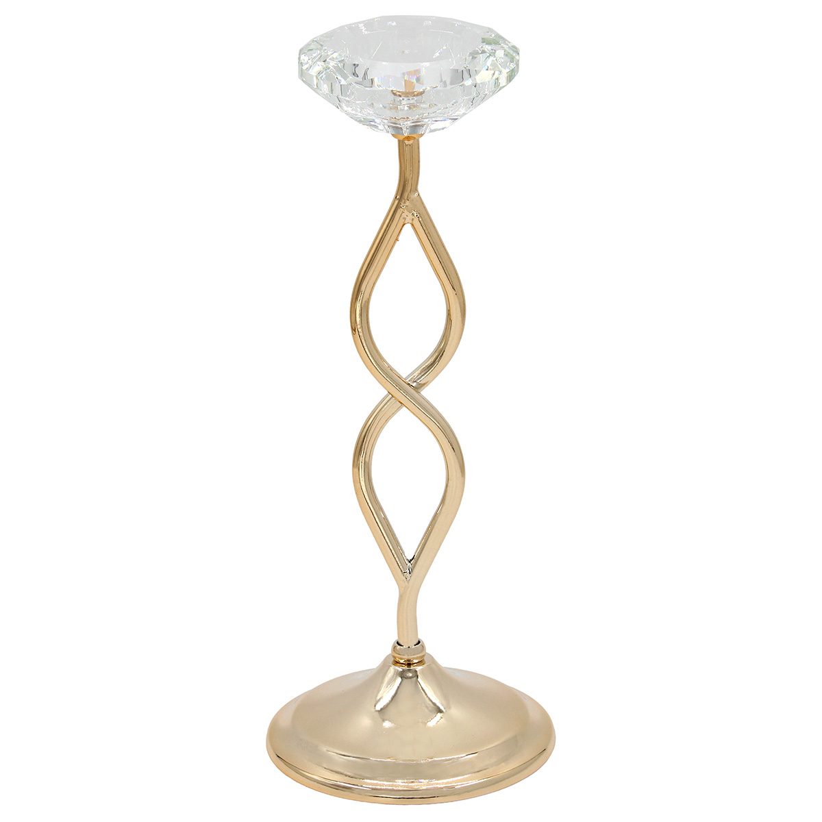 Κηροπήγιο μεταλλικό Φ13Χ31 εκ. Χρυσό με κρύσταλλο