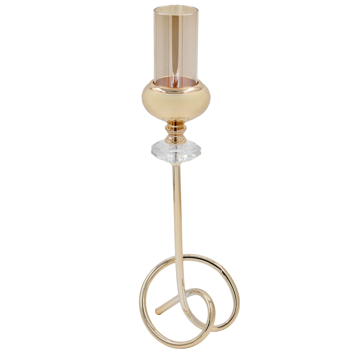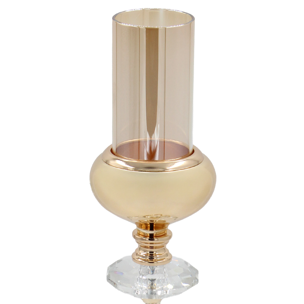 Κηροπήγιο μεταλλικό Φ13Χ40 εκ. Χρυσό με γυαλί και κρύσταλλο