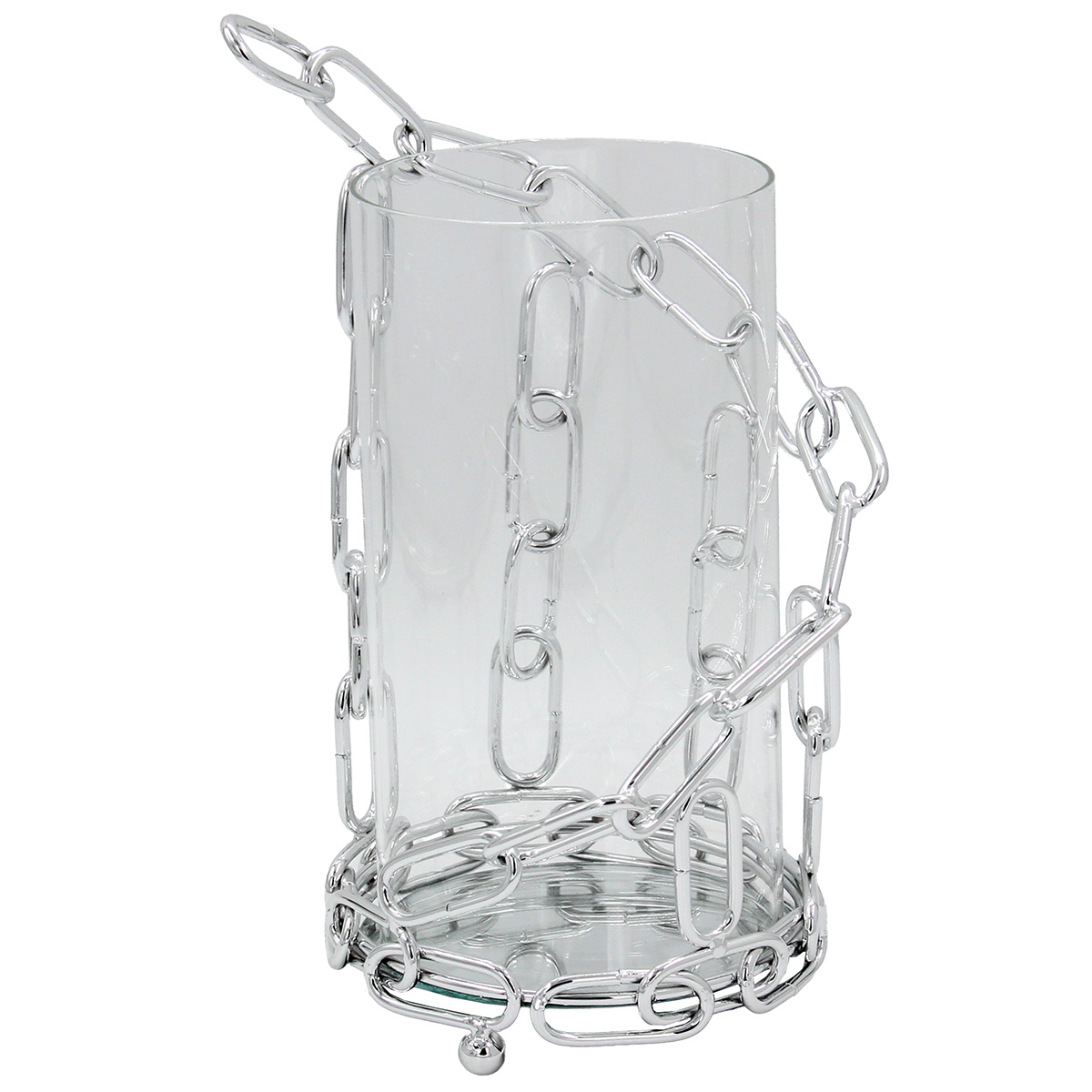 Κηροπήγιο μεταλλικό Φ14Χ25 εκ. Ασημί με γυαλί