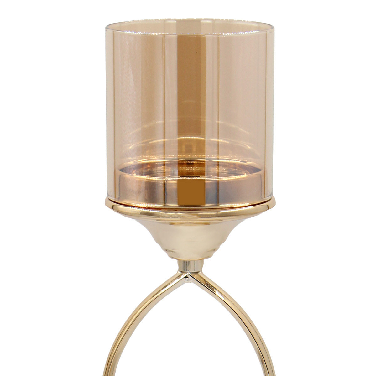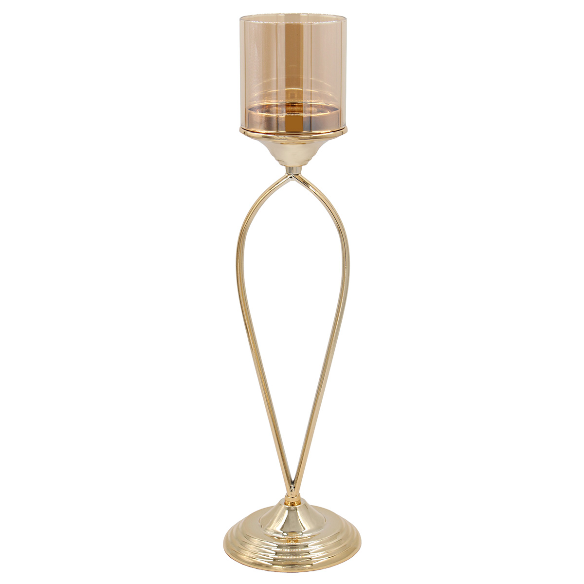 Κηροπήγιο μεταλλικό Φ14Χ52 εκ. Χρυσό με γυαλί