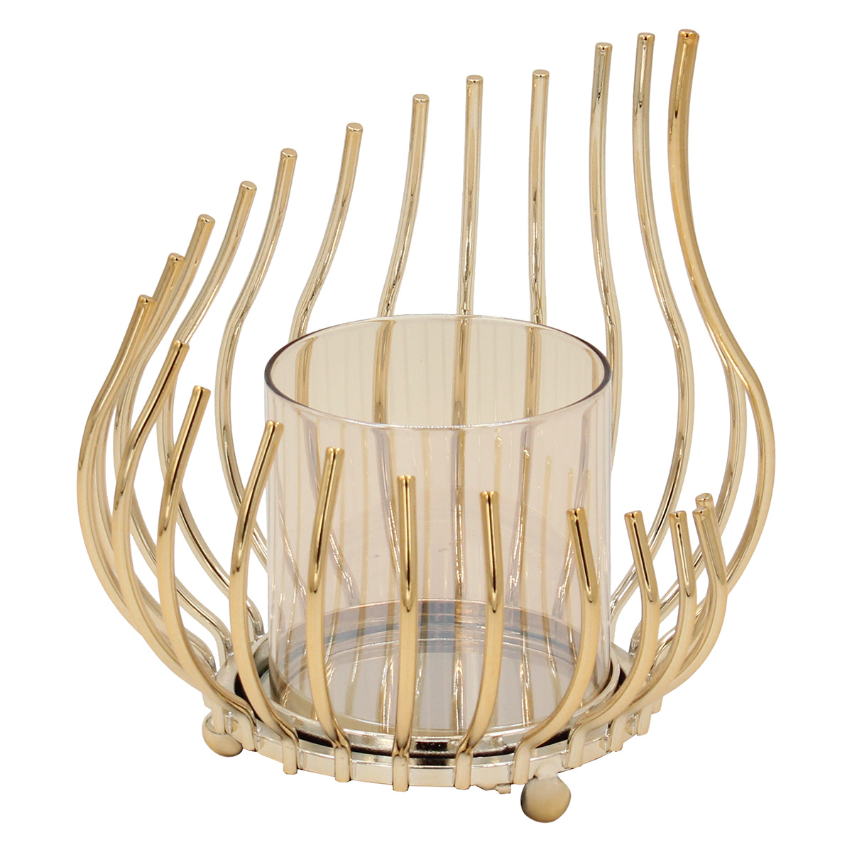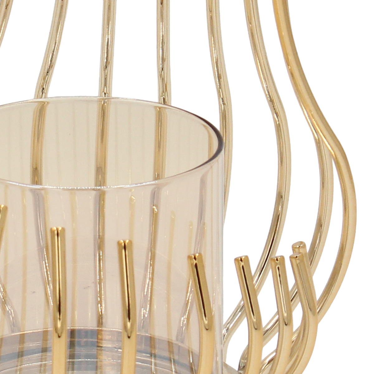 Κηροπήγιο μεταλλικό Φ15Χ17 εκ. Χρυσό με μελί γυαλί