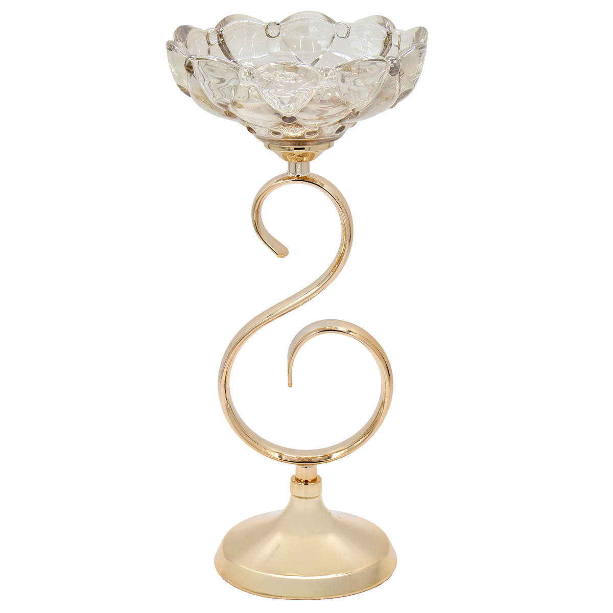 Κηροπήγιο μεταλλικό Φ15Χ33 εκ. Χρυσό με Μελί γυαλί - KESKOR 43171