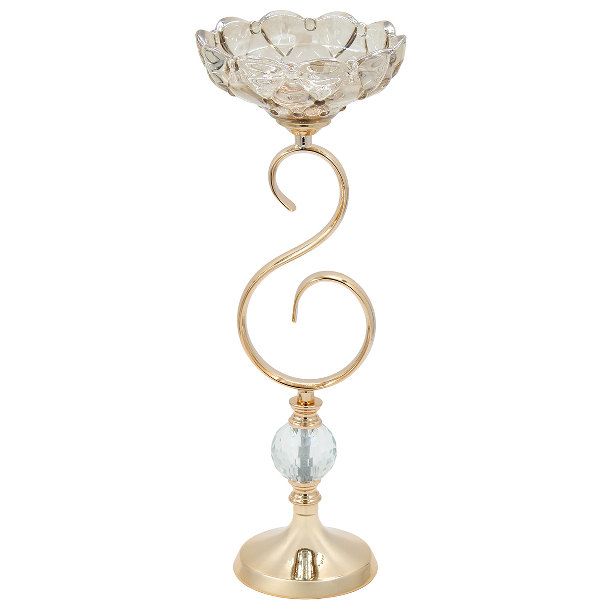 Κηροπήγιο μεταλλικό Φ15Χ41 εκ. Χρυσό με Μελί γυαλί και κρύσταλλο