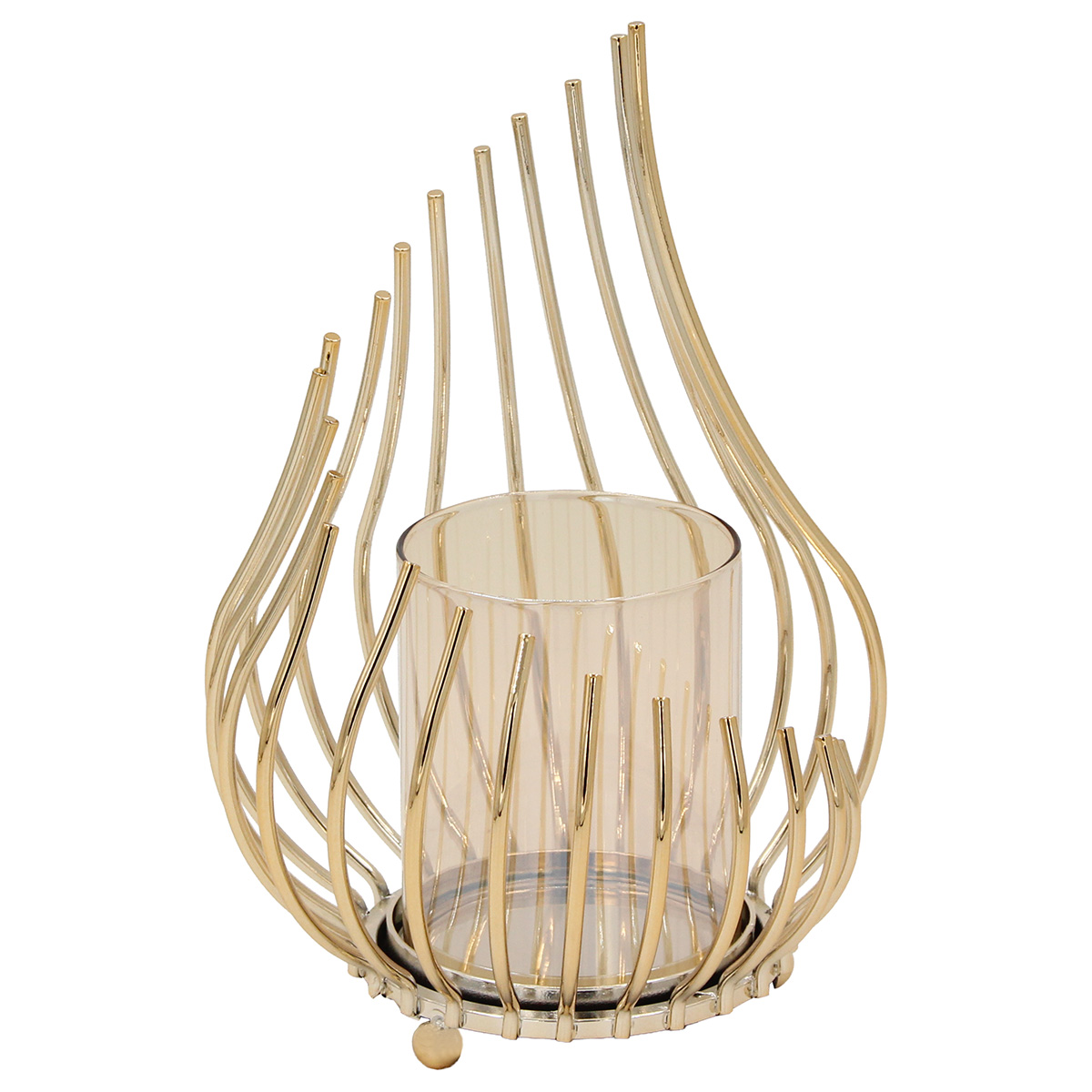Κηροπήγιο μεταλλικό Φ16Χ23 εκ. Χρυσό με μελί γυαλί