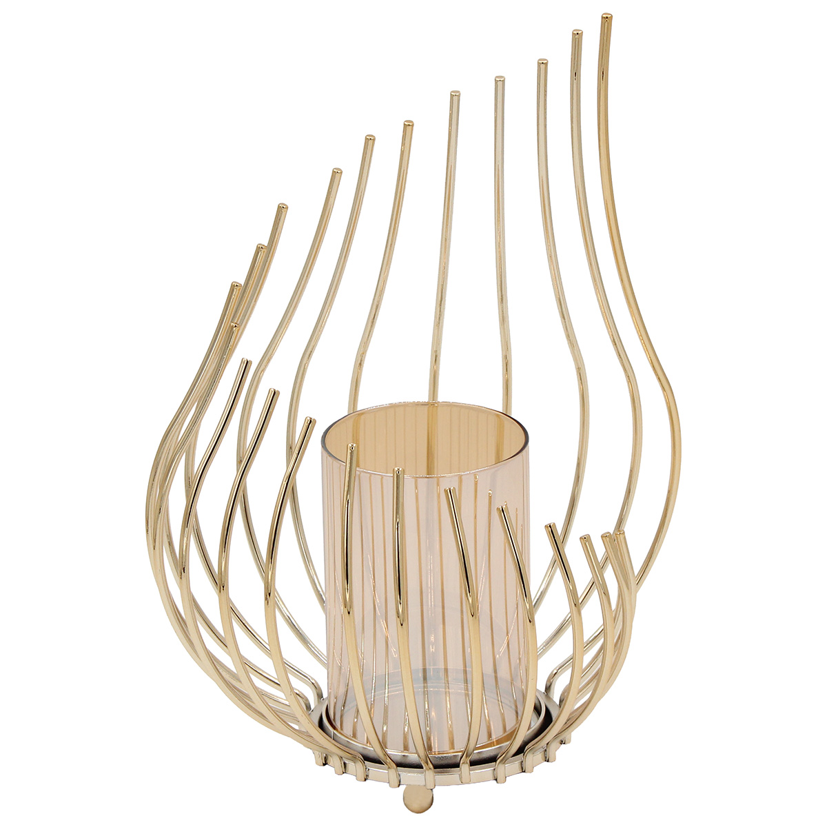 Κηροπήγιο μεταλλικό Φ19Χ29 εκ. Χρυσό με μελί γυαλί