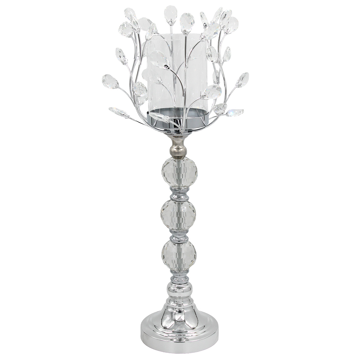 Κηροπήγιο μεταλλικό Φ22Χ59 εκ. Ασημί με κρύσταλλα και γυαλί