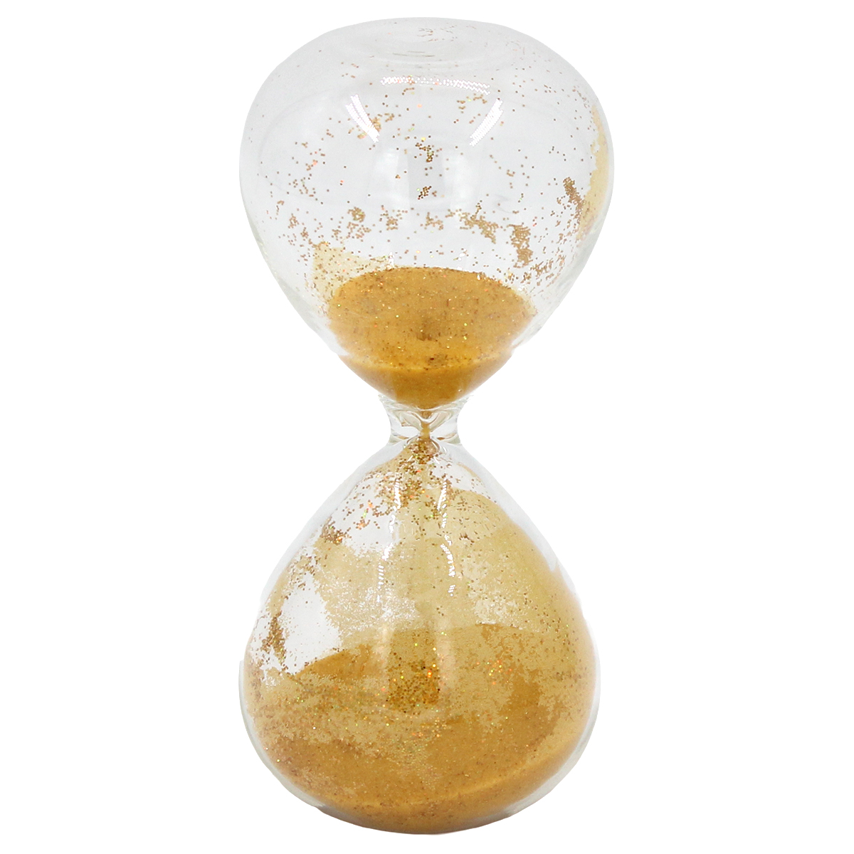 Κλεψύδρα γυάλινη διακοσμητική Φ4,5Χ10 εκ. Διάφανη με Χρυσή άμμο και γκλίτερ