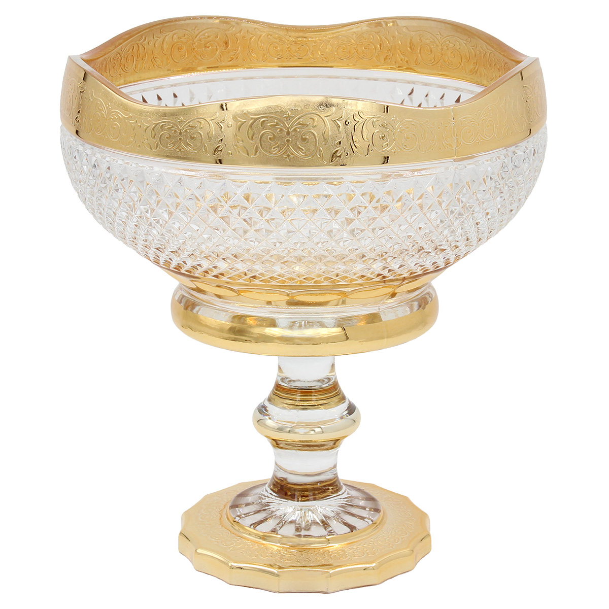 Κουπ γυάλινο κολωνάτο Φ24Χ26 εκ. Χρυσό με ανάγλυφο σχέδιο