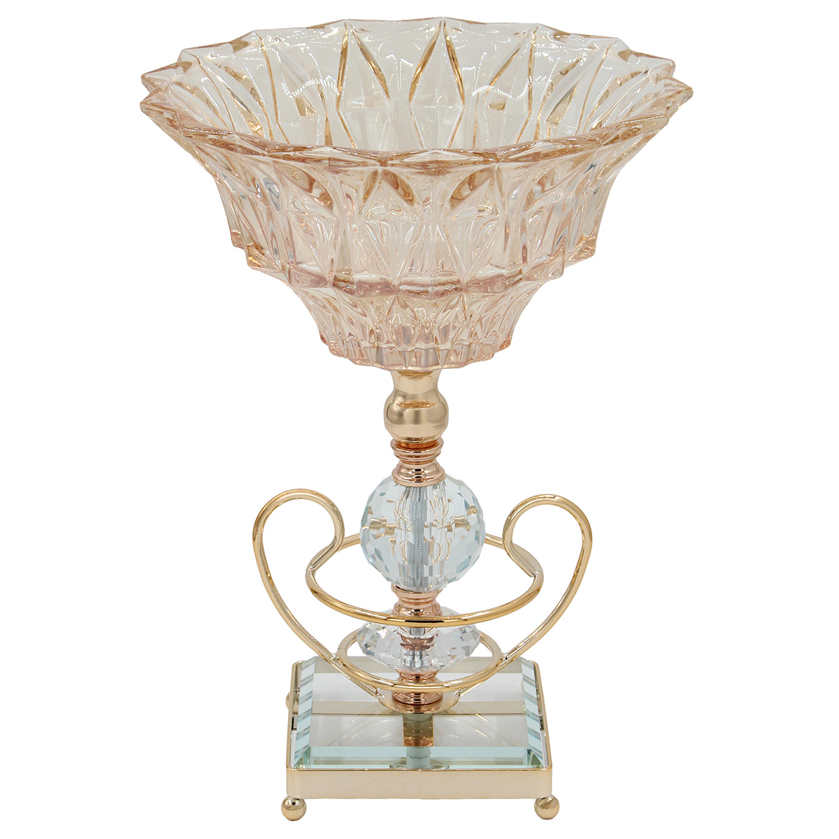 Κουπ γυάλινο κολωνάτο Φ25Χ34 εκ. Χρυσό με μεταλλική βάση και κρύσταλλα - KESKOR 43234