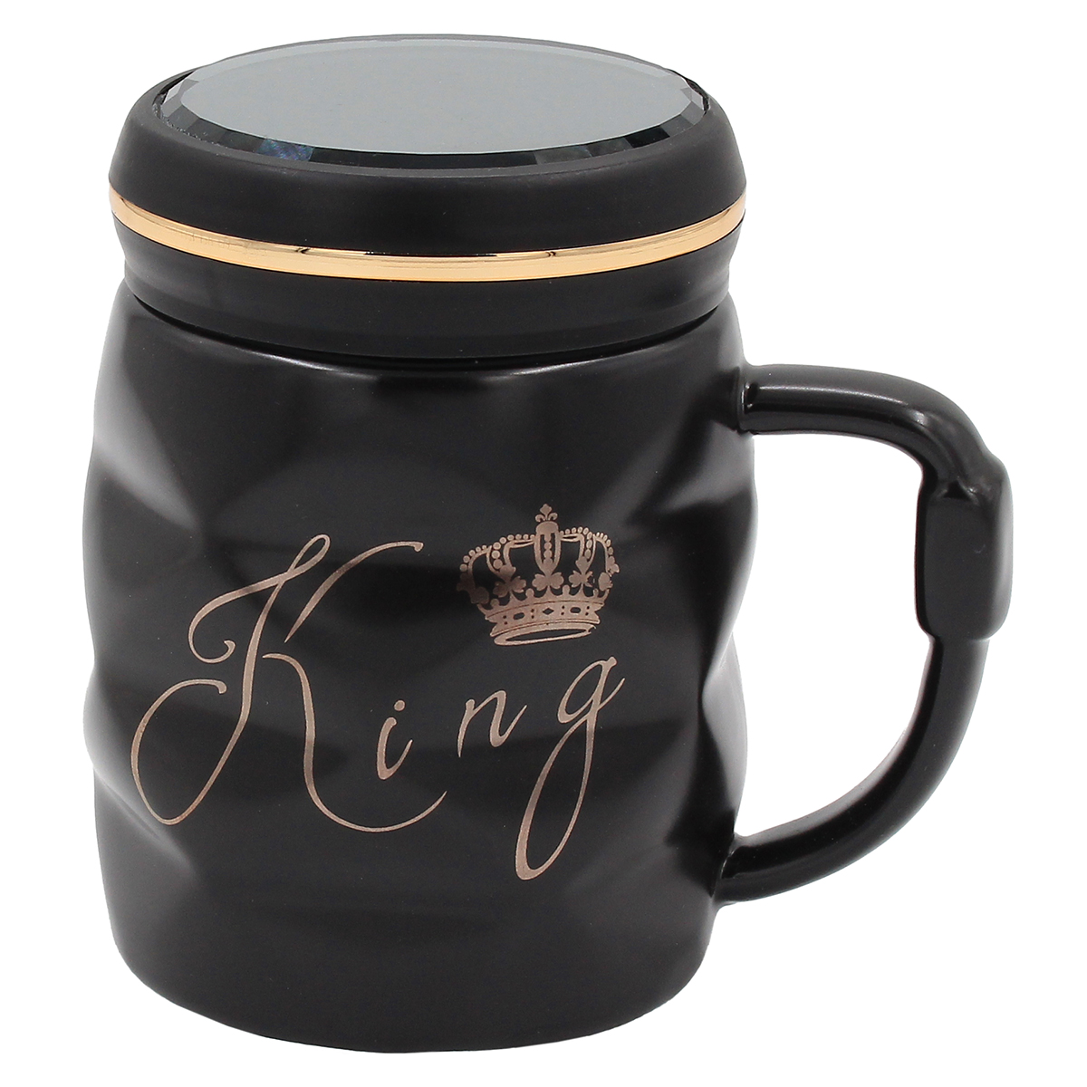 Κούπα κεραμική 360 ml Φ8,5Χ11,5 εκ. King μαύρο χρυσό με καπάκι καθρέπτη