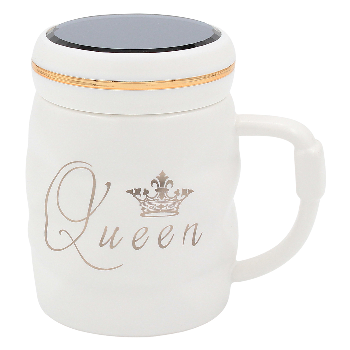 Κούπα κεραμική 360 ml Φ8,5Χ11,5 εκ. Queen λευκό χρυσό με καπάκι καθρέπτη